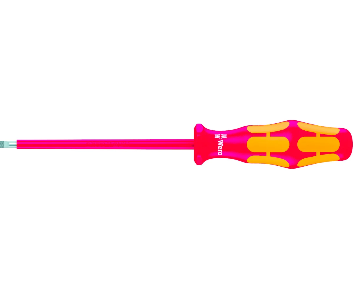 Отвёртка 1000 V 160I 0,6 х 3,5 х 100 мм Wera WE-006110 - это профессиональный ручной инструмент, который используется для винтов с прямым шлицем. Отвёртку очень удобно хранить, поскольку она небольших размеров и имеет малый вес.