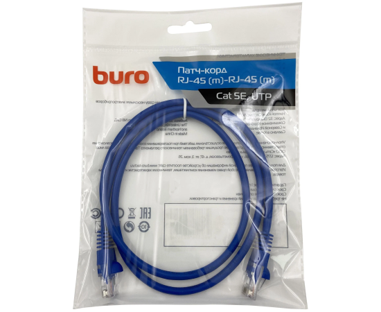 Патч-корд Buro (UTP-5E-1M-BL) UTP 4 пары cat5E CCA molded 1м голубой RJ-45 (m)-RJ-45 (m)