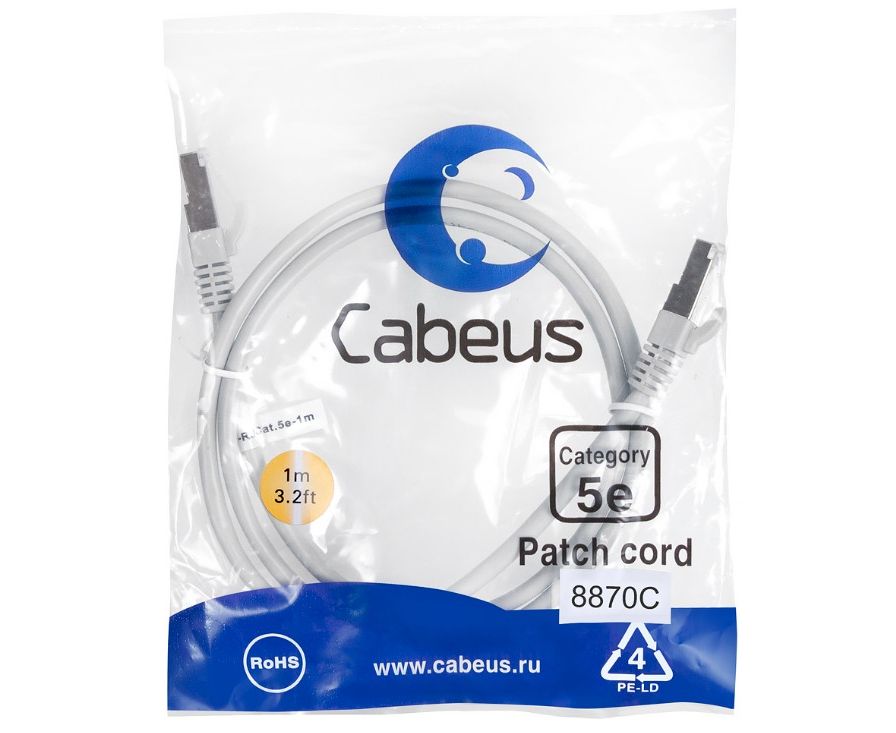 Патч-корд Cabeus PC-FTP-RJ45-Cat.5e-1m-LSZH экранированный, серый