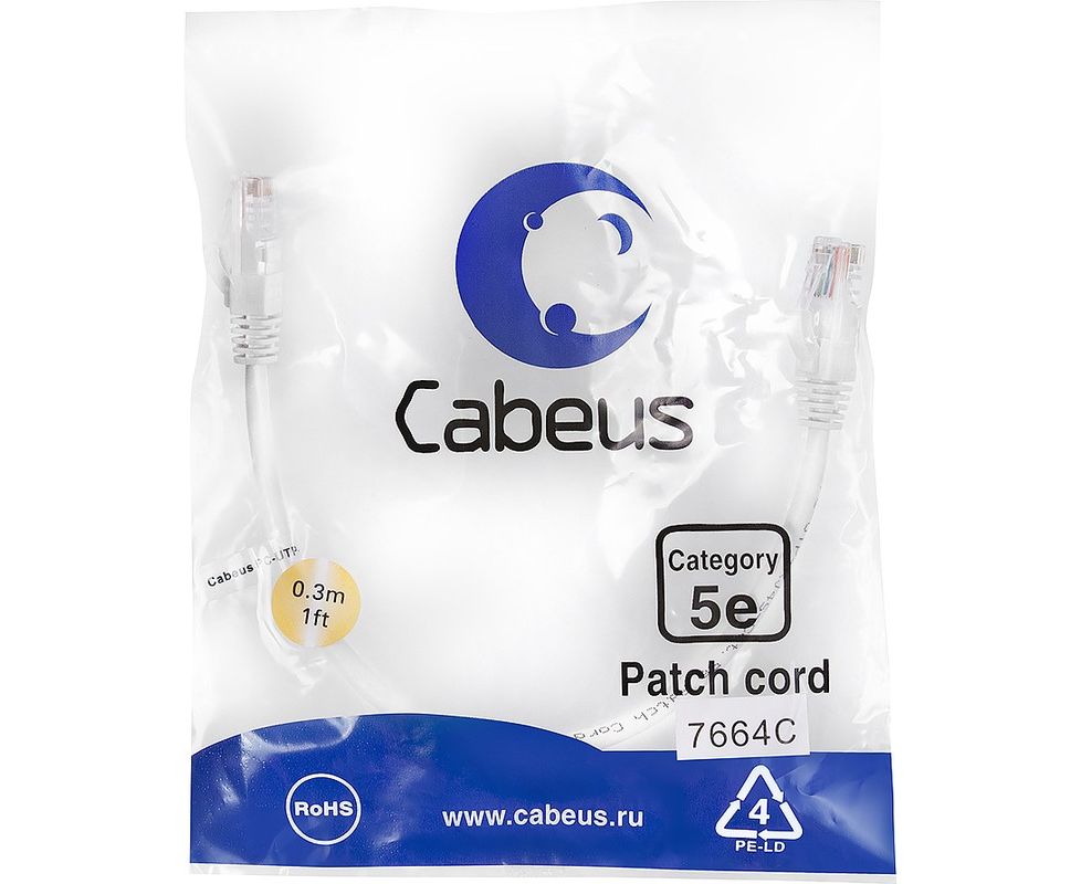 Патч-корд Cabeus PC-UTP-RJ45-Cat.5e-0.3m-WH неэкранированный, белый