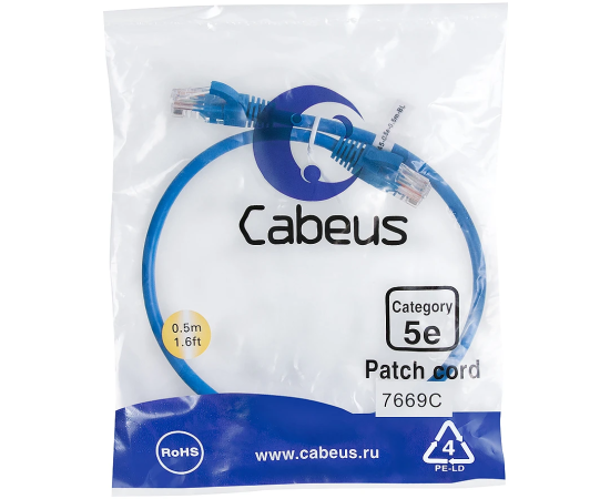 Патч-корд Cabeus PC-UTP-RJ45-Cat.5e-0.5m-BL-LSZH неэкранированный, синий