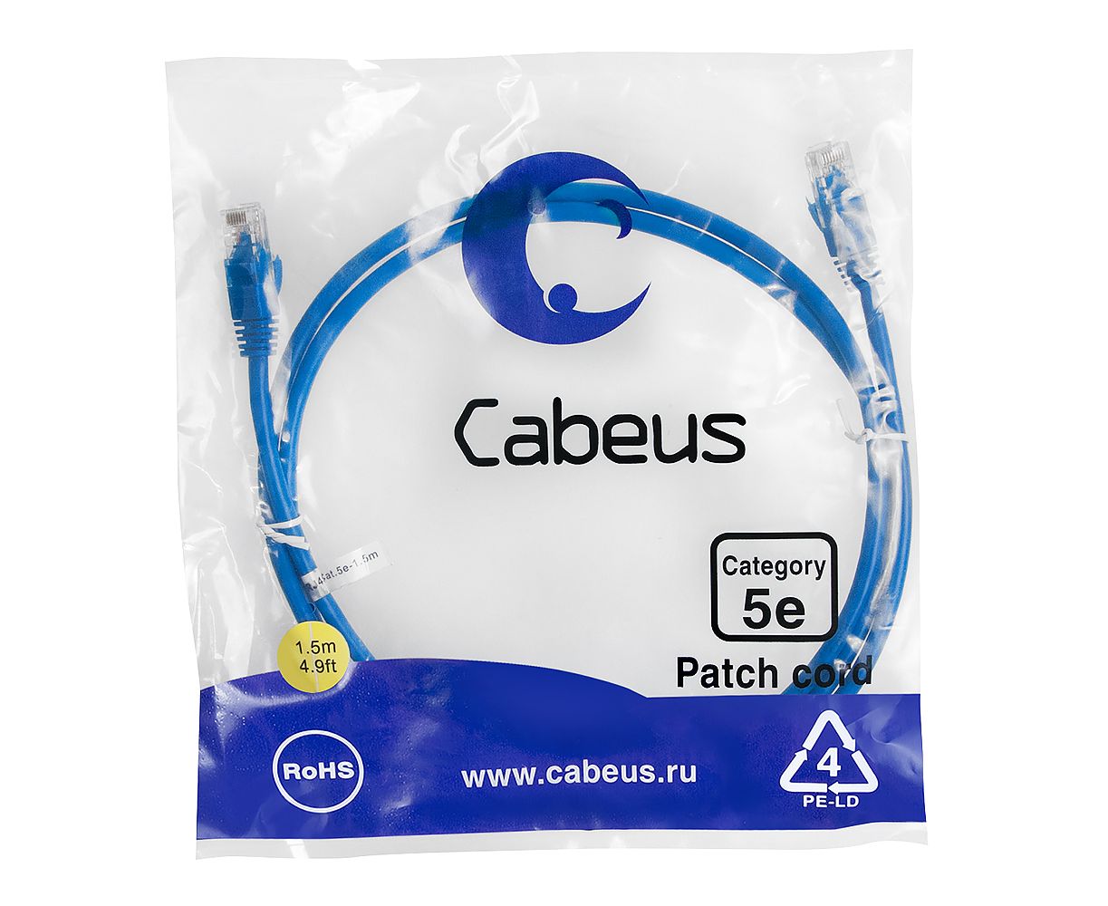Патч-корд Cabeus PC-UTP-RJ45-Cat.5e-1.5m-BL-LSZH неэкранированный, синий