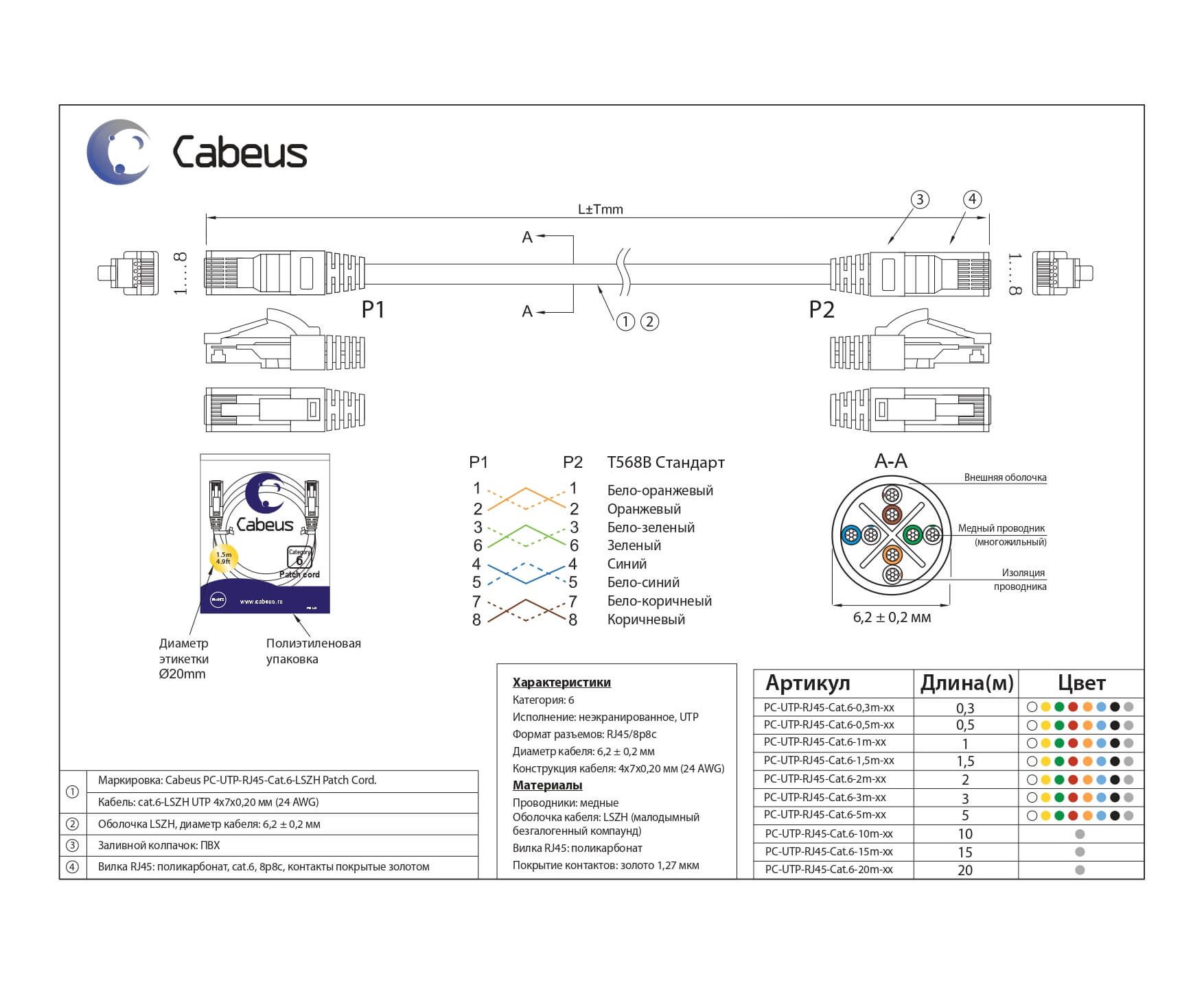 Диаметр кабеля: 6,2 мм ±0,2 мм