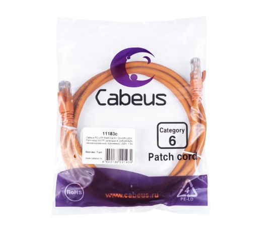 Патч-корд Cabeus PC-UTP-RJ45-Cat.6-1.5m-OR-LSZH 2xRJ45/8p8c, неэкранированный, оранжевый