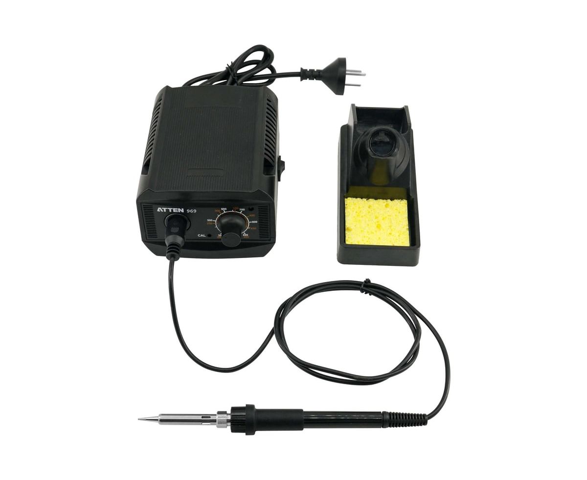 ATTEN ST-969 — цифровая паяльная станция начального уровня. Диапазон рабочих температур от 200 до 480°C. Станция поддерживает температурную поправку и точную калибровку обратной связи. Станция оснащена ручкой для предварительной настройки или переключения между часто используемыми температурами. Отдельная подставка для паяльника, входящая в комплект поставки, экономит пространство и упрощает работу с паяльником.