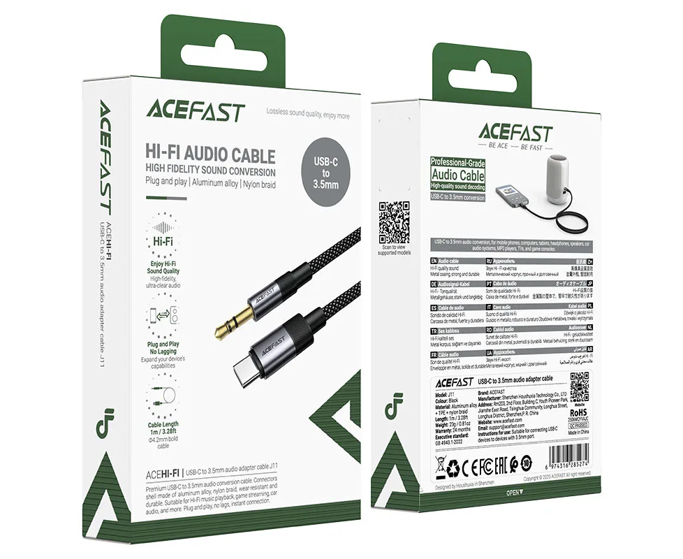 Переходник ACEFAST J11 USB-C to 3.5mm audio adapter cable Black