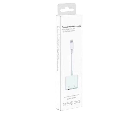 Переходник MH-80Y, Lightning - Jack 3.5/Lightning, 10 см, белый