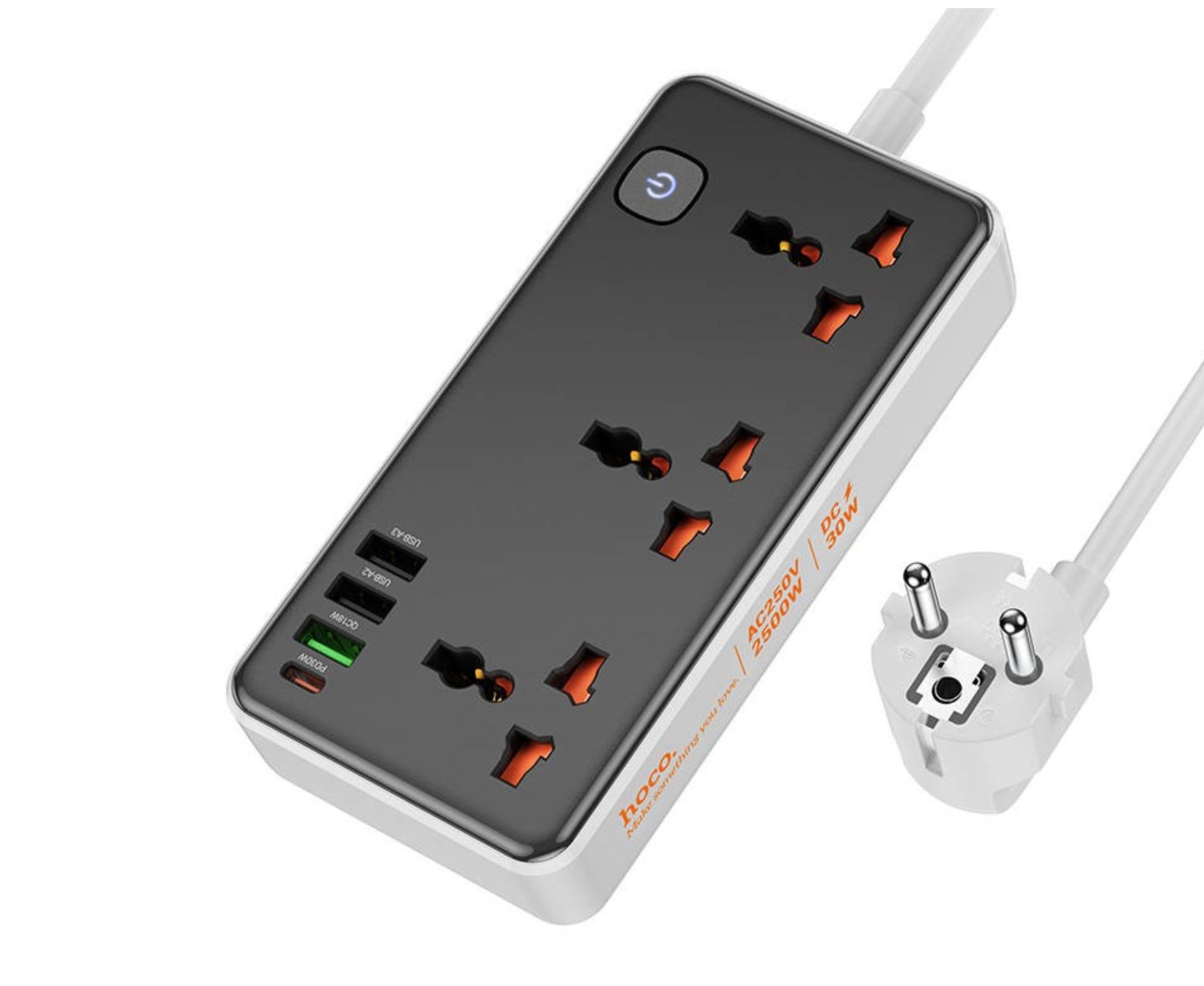 Переходник сетевой Hoco AC8A Storm 3-position socket (PD30W/1C3A) (EU) (черный)