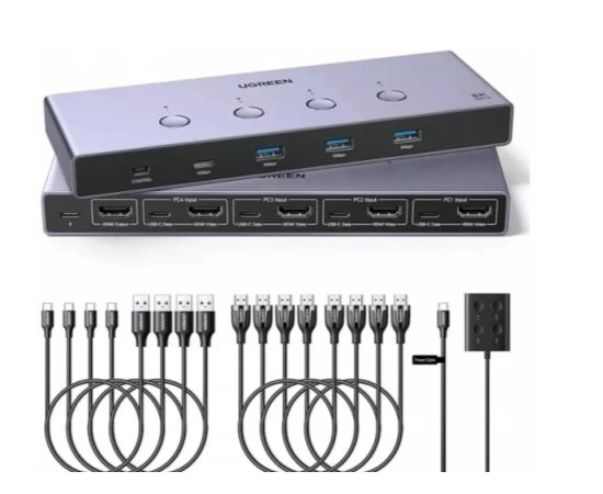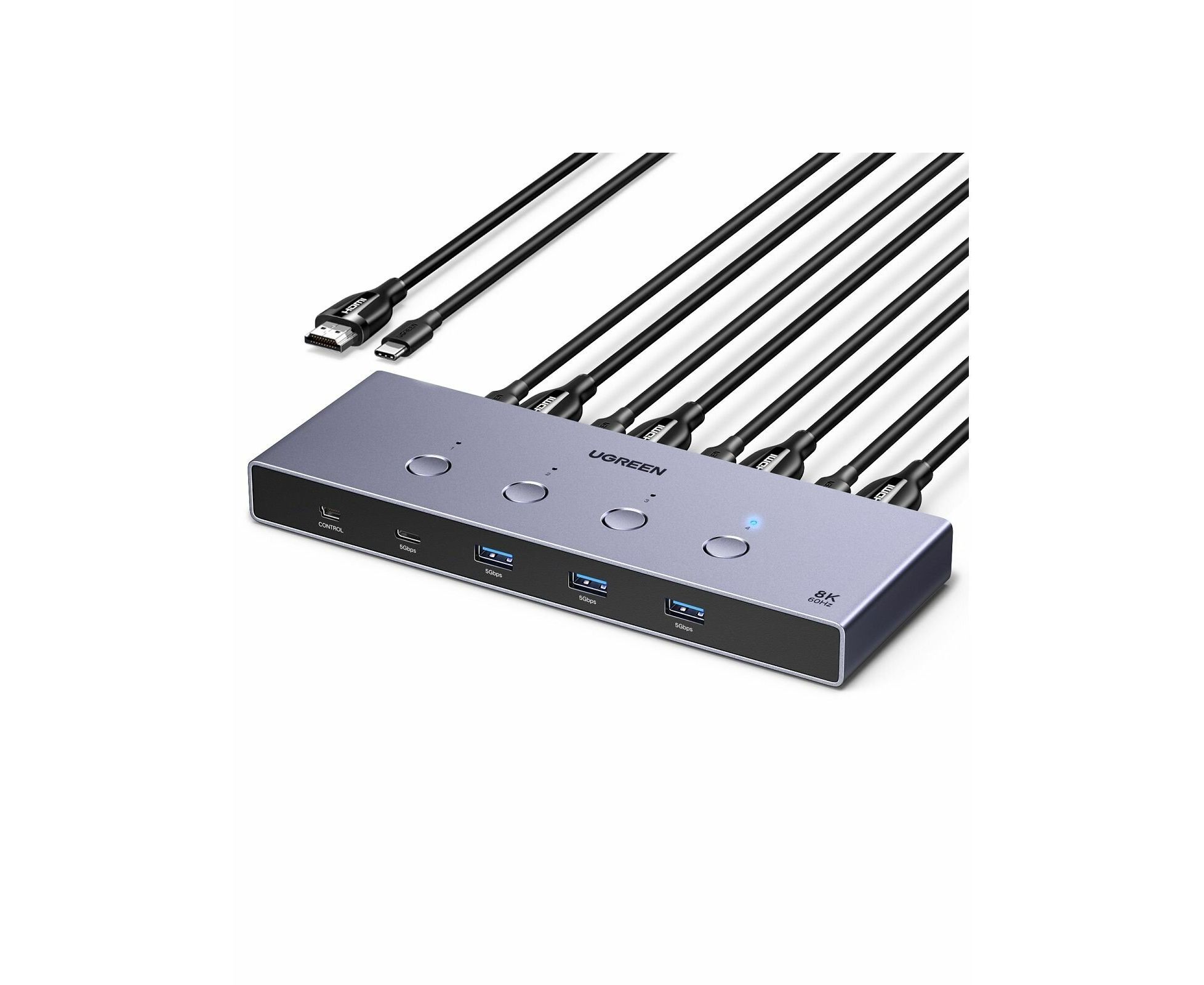 Переключатель UGREEN AK701 (55397) 8K 60Hz HDMI KVM Switch 4-in-1 Out серый космос