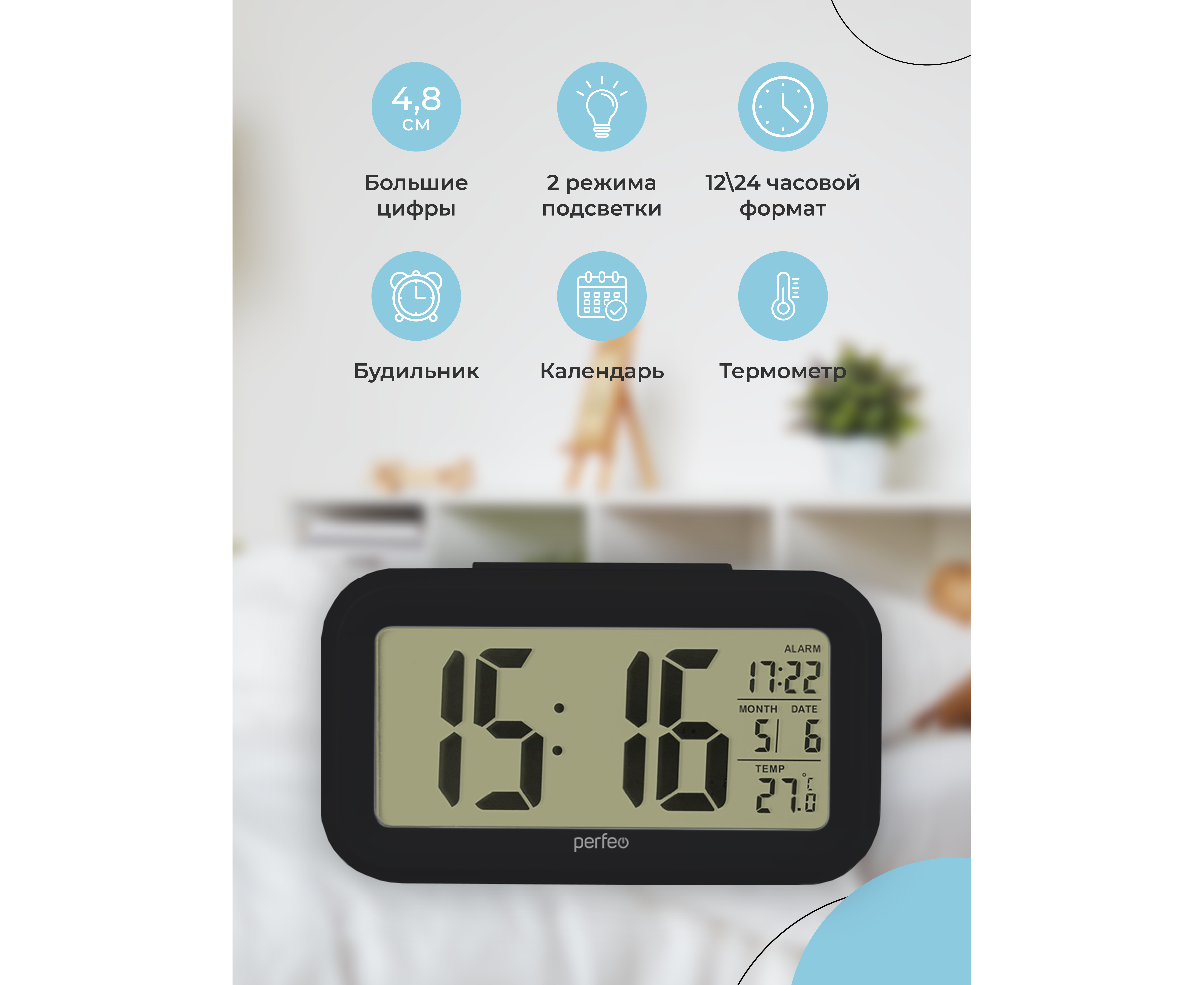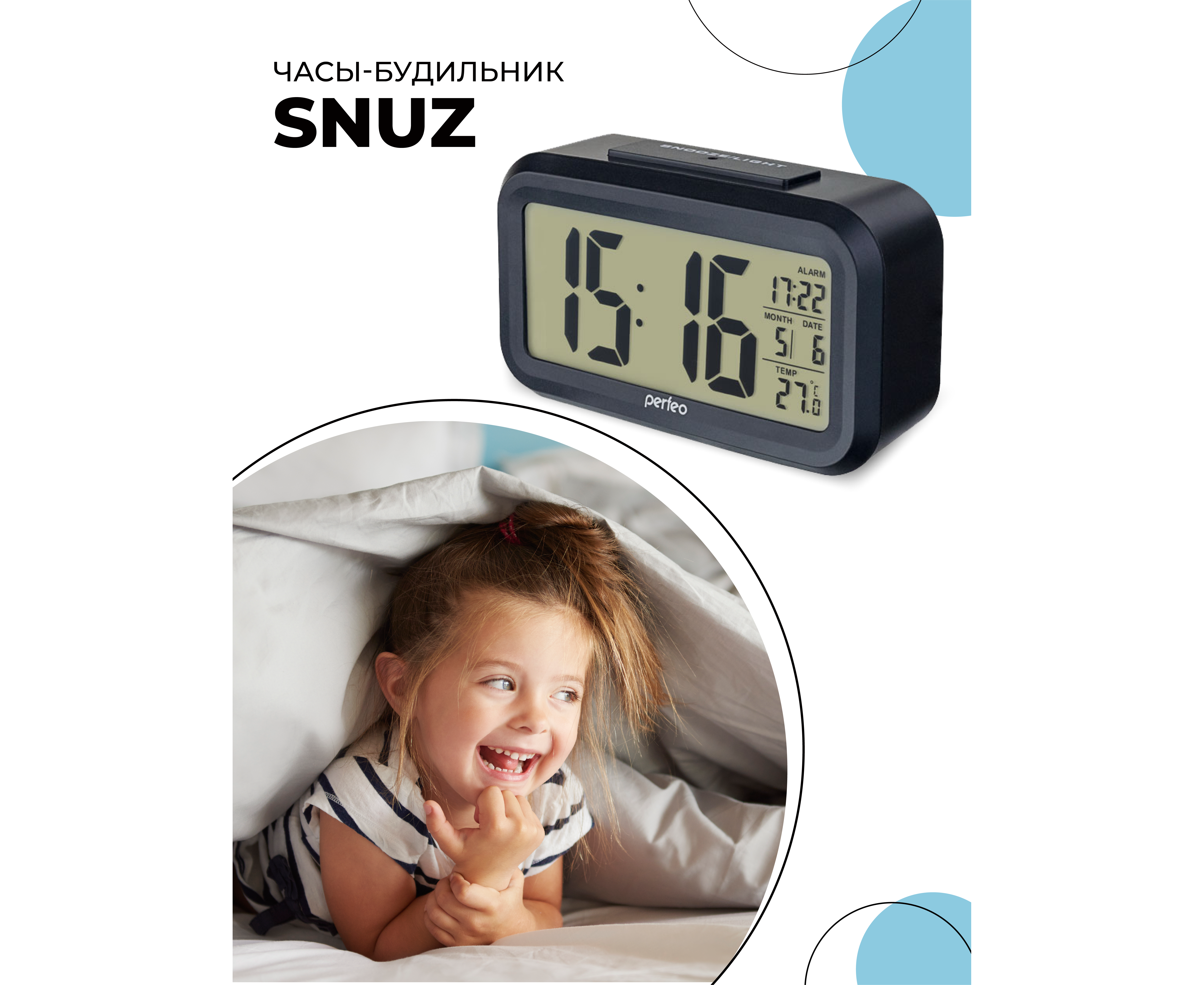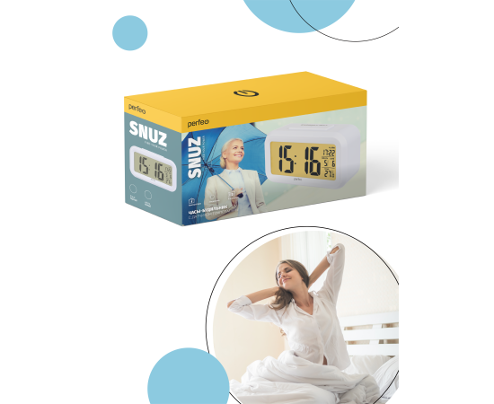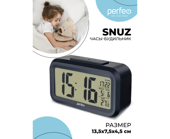 Часы-будильник Perfeo "Snuz", (PF-S2166) время, температура, дата, черные, (Арт. PF_A4849)