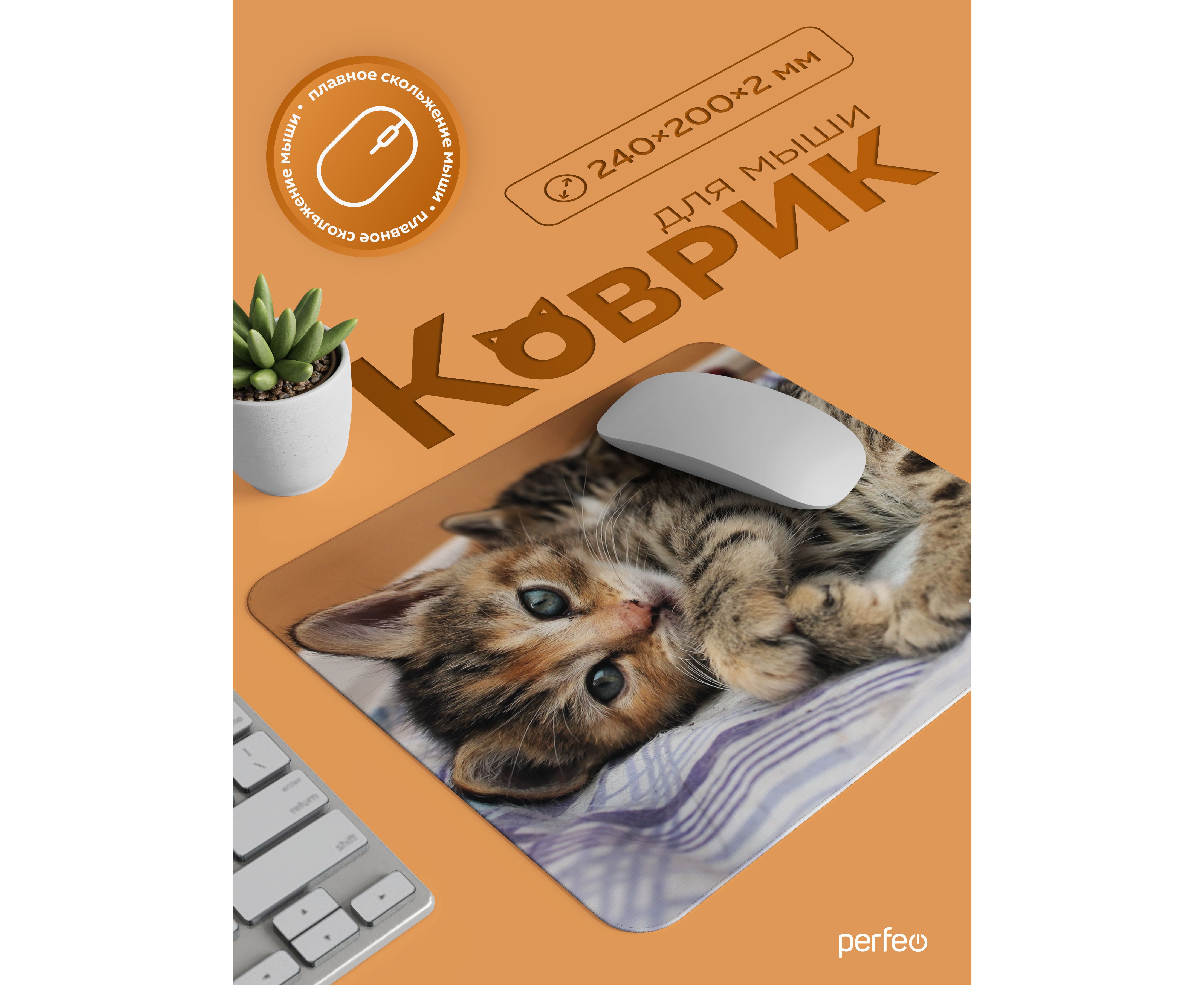 Perfeo Коврик для компьютерной мыши "Cat", Рис.46 (240*200*2 мм), ткань+резиновое основание