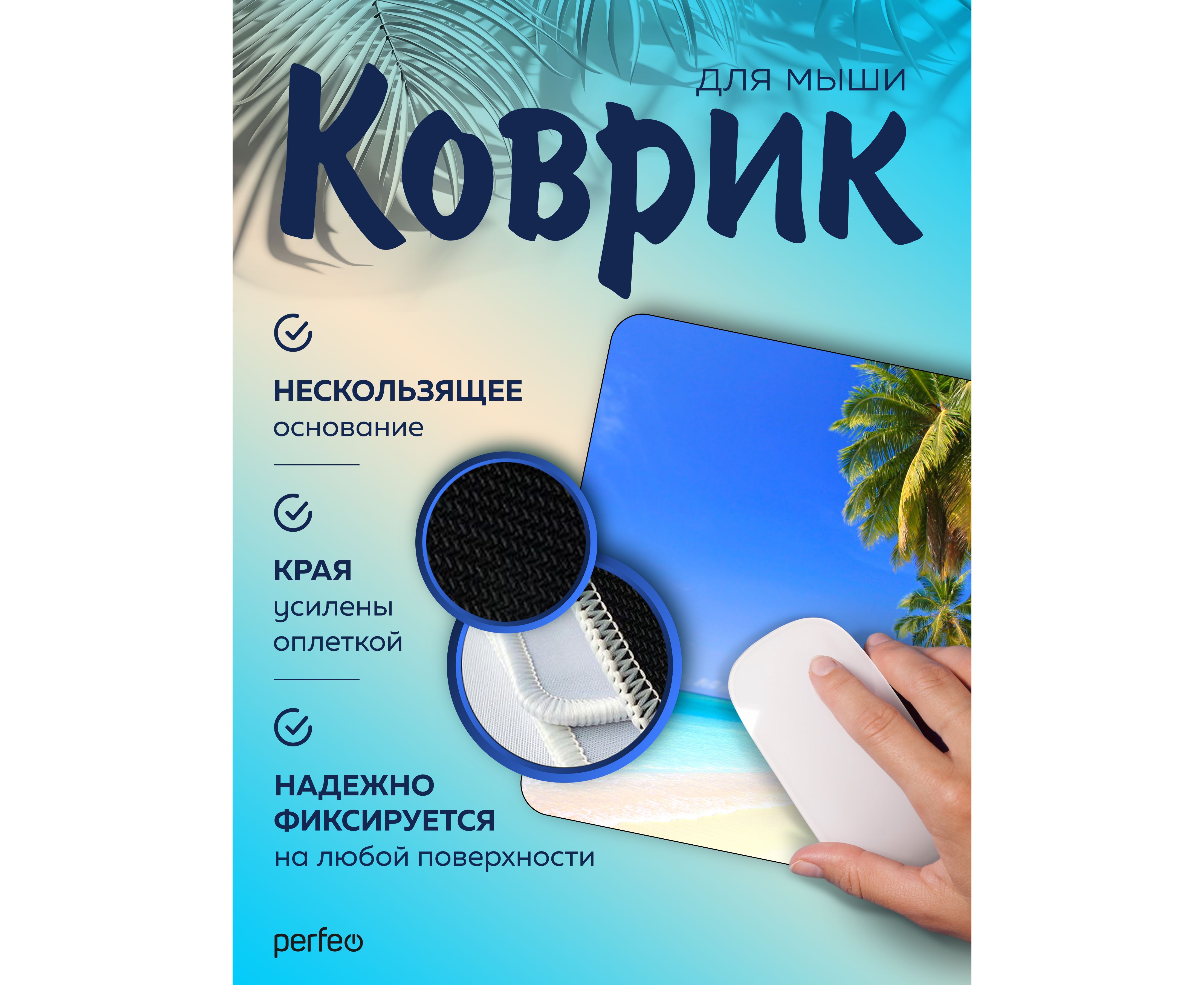 Компьютерный коврик для мыши из серии Пляж обладает гладкой тканевой поверхностью, которая обеспечивает точность и плавность движения - мышь скользит быстро и четко. Оверлочная строчка по краю увеличивает износостойкость и срок службы. Нескользящая резиновая основа надёжно фиксирует коврик на столе. Небольшой вес и хорошая гибкость позволят Вам взять коврик для мыши куда угодно для комфортного пользования ноутбуком. Качественный принт будет вас долгое время радовать. Подходит для оптических и лазерных мышей с любой чувствительностью и любым типом сенсора.