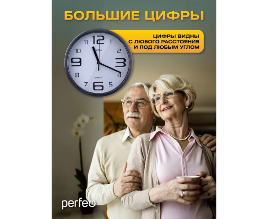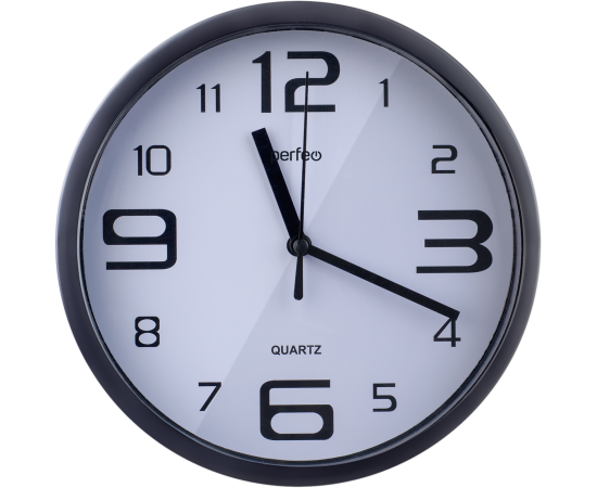 Настенные часы Perfeo "PF-WC-002"(С1), круглые д. 25 см, чёрный корпус / белый циферблат