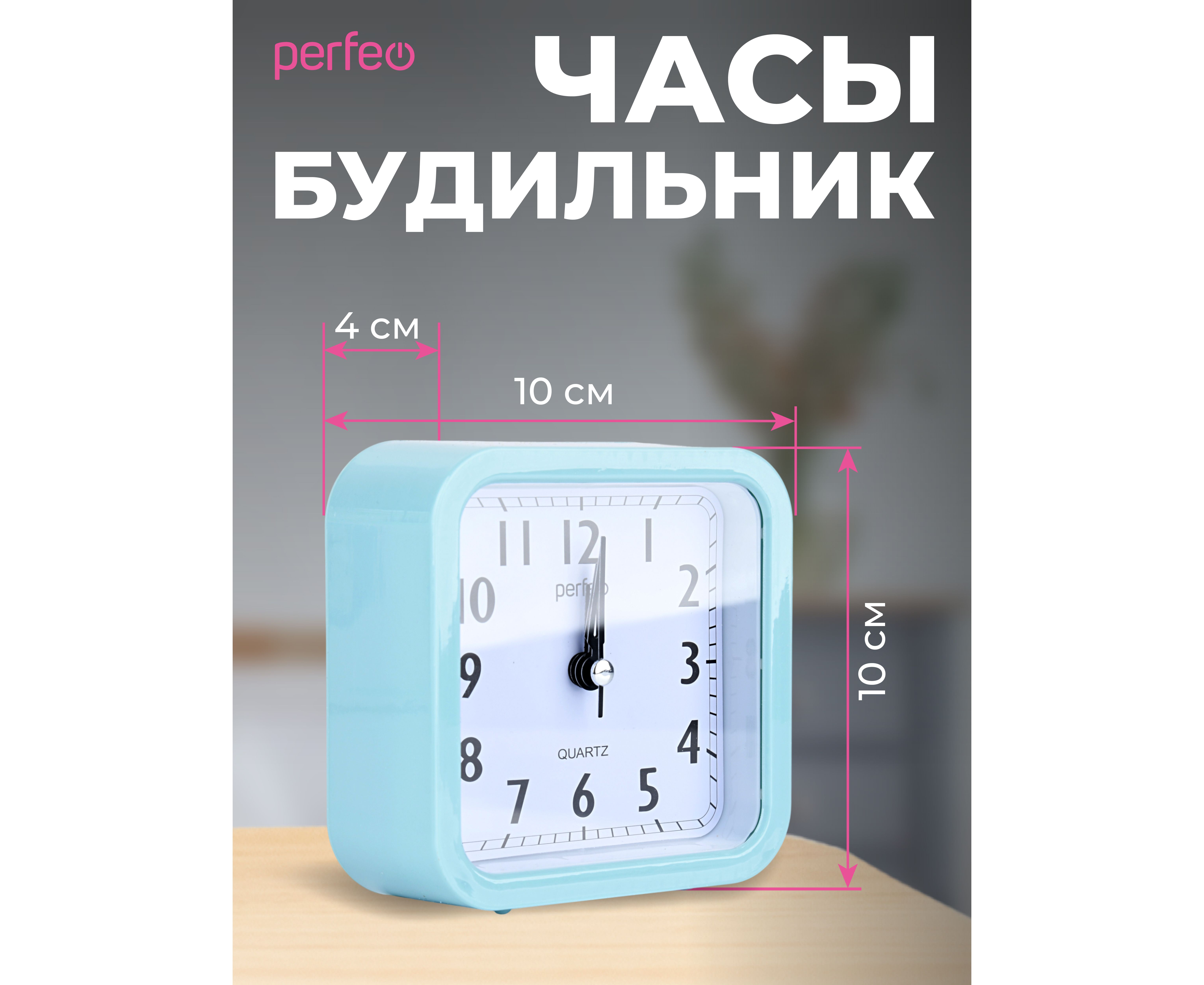 Хотите просыпаться каждое утро с улыбкой на лице? Тогда будильник "Perfeo" PF-TC-019 идеально подойдет для вас! Оригинальная квадратная форма и яркий бирюзовый цвет делают этот будильник стильным аксессуаром для вашего интерьера. Высокое качество и надежность гарантированы брендом Perfeo и годовой гарантией. Этот будильник предназначен для взрослой аудитории и идеально подойдет для размещения в кухне, гостиной, спальне или коридоре. Часы работают на батарейках формата AA, обеспечивая стабильный шаговый ход. Сигнал звонка будильника достаточно громкий, чтобы разбудить вас в нужное время. Не упустите возможность сделать свои утра яркими и продуктивными с помощью будильника "Perfeo" PF-TC-019. Закажите прямо сейчас и наслаждайтесь качеством из Китая! Perfeo PF-TC-019 квадрат зеленые