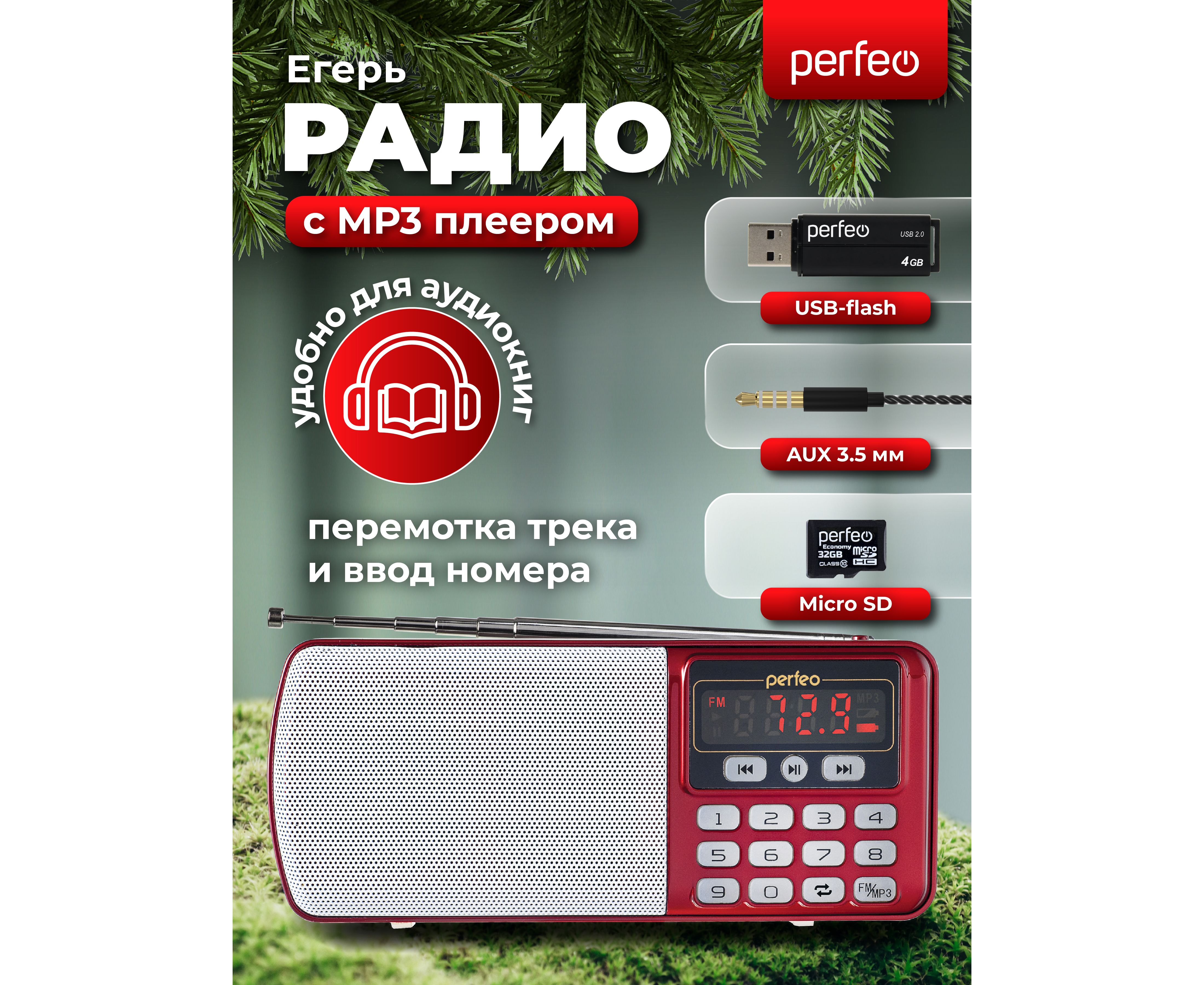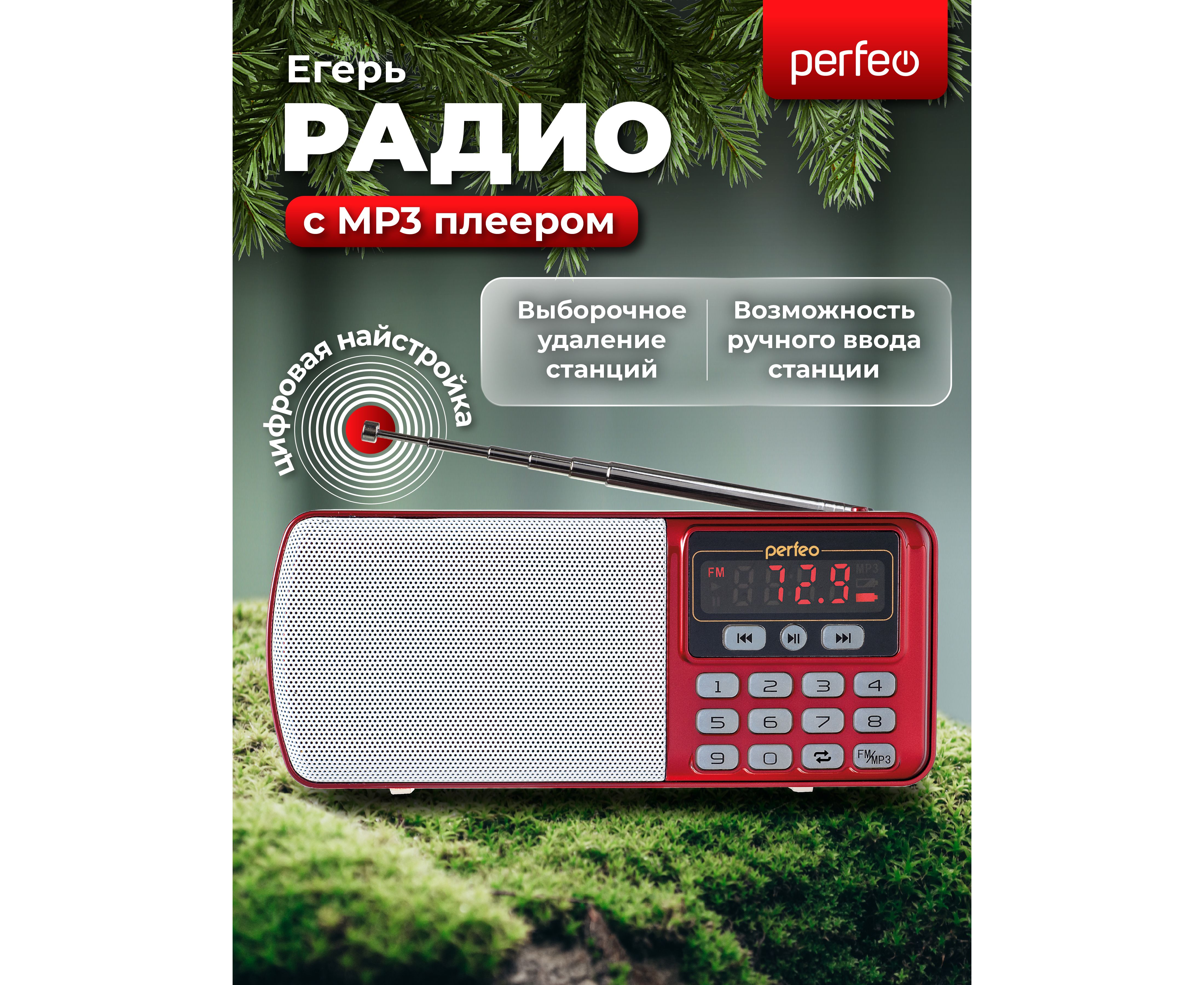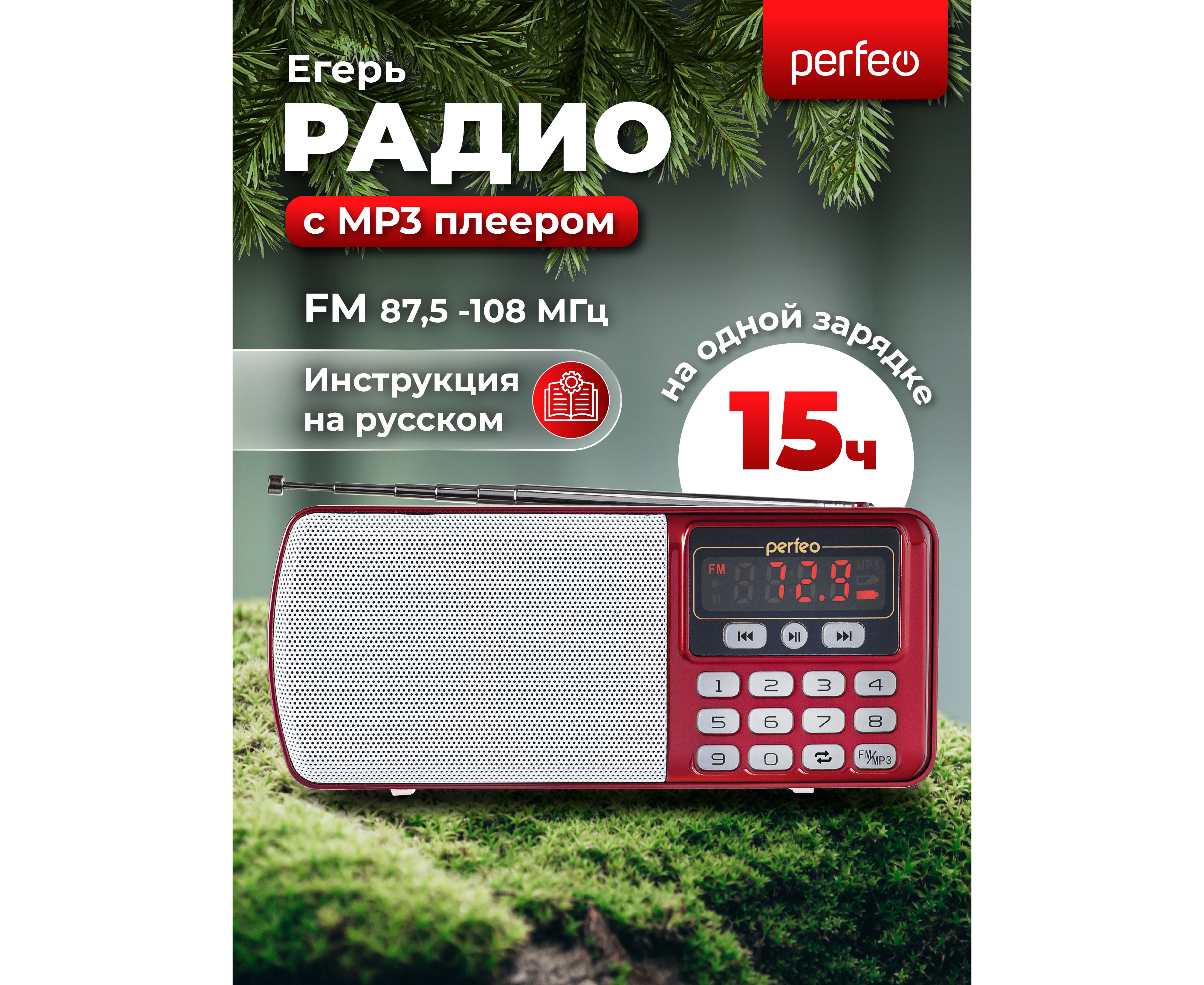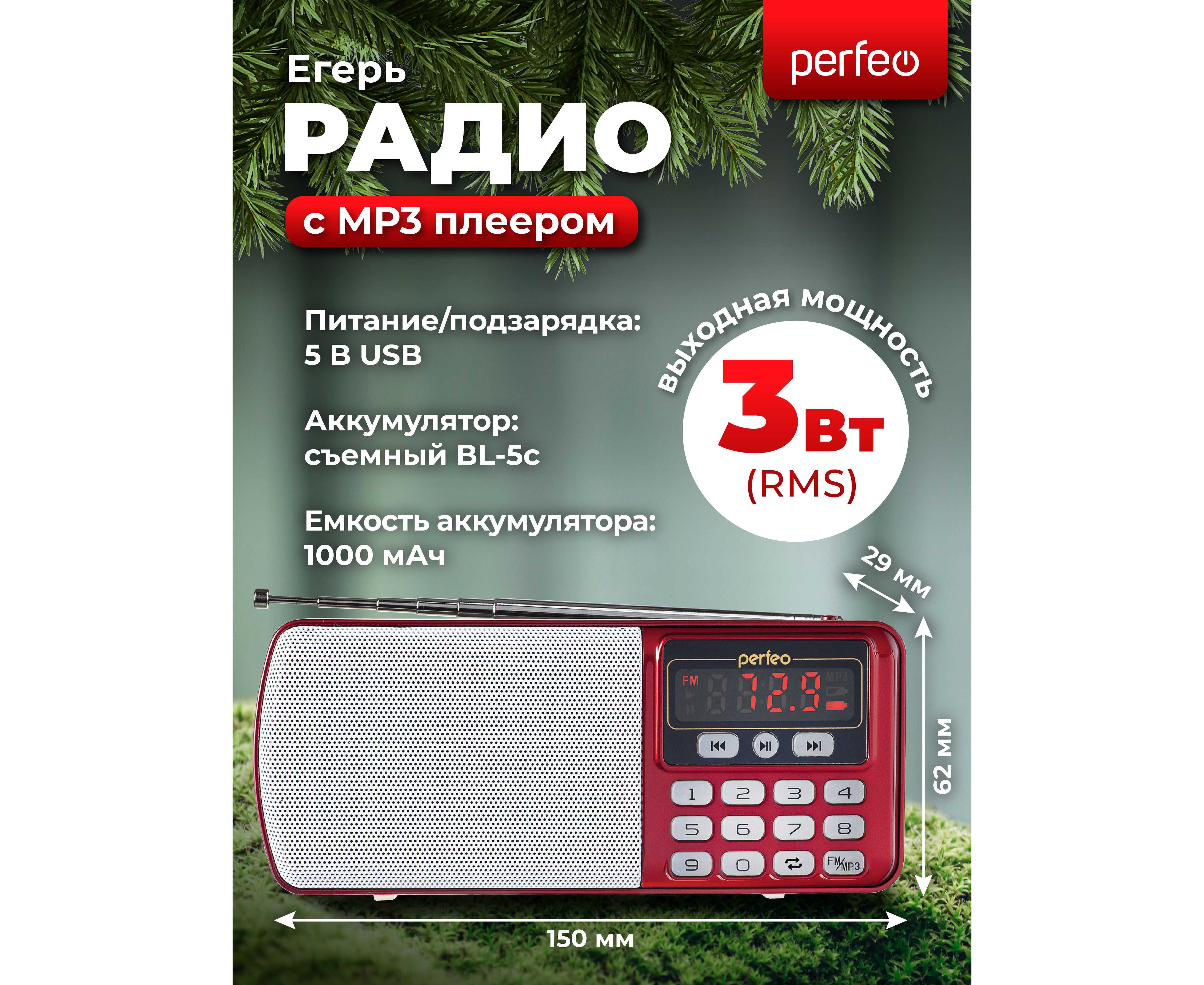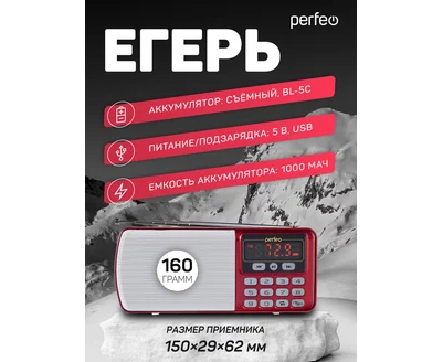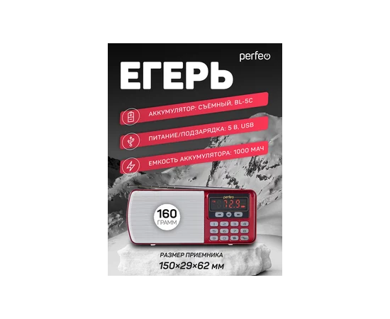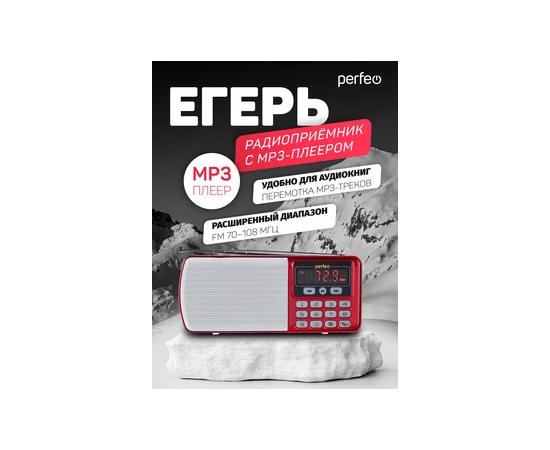 Цифровой радиоприемник Perfeo ЕГЕРЬ FM+ 70-108МГц/ MP3/ питание USB или BL5C/ Красный (i120-RED)