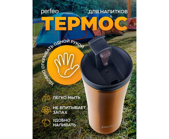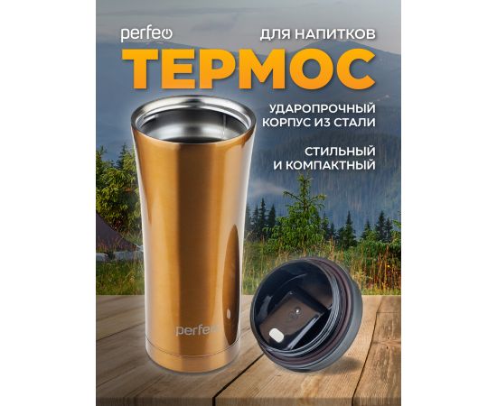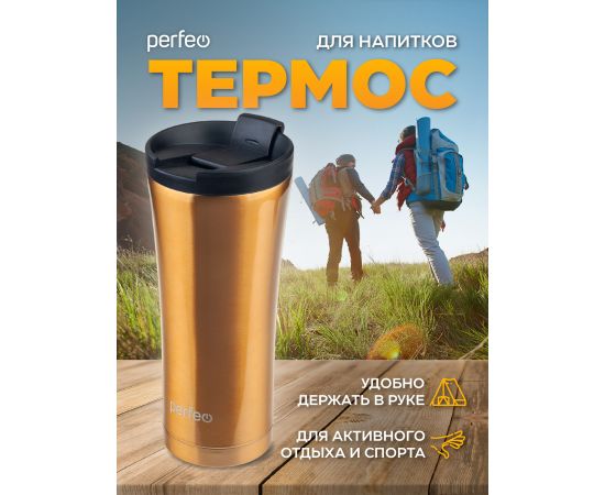 Термокружка для напитков PERFEO с крышкой-поилкой, объем 0,5 л., бронза (PF_D0203)