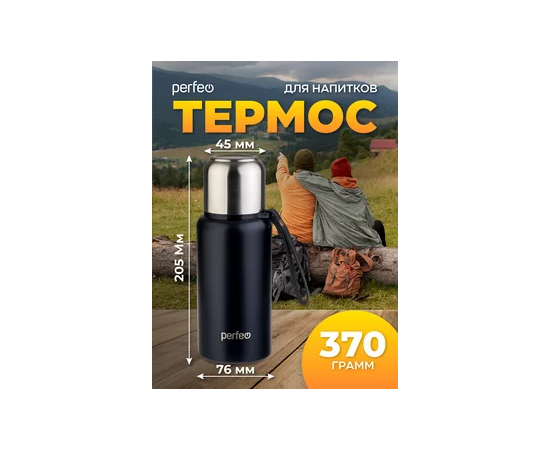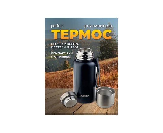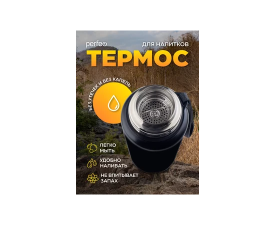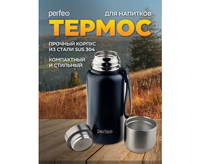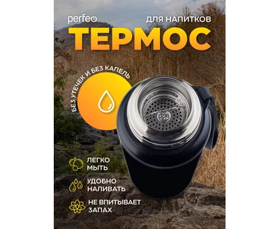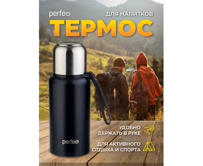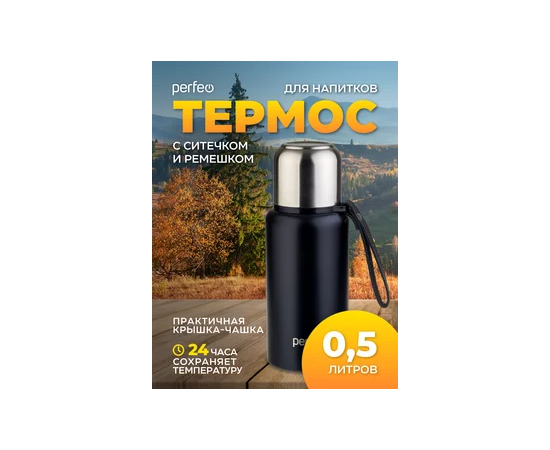 Термос для напитков PERFEO с глухой пробкой, ситечком, ремешком, объем 0,5 л., черный, (Арт. PF_C3704)