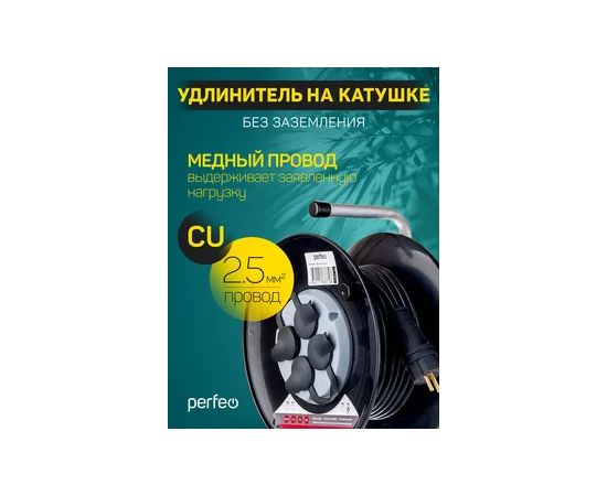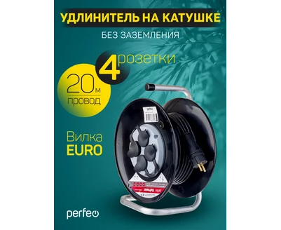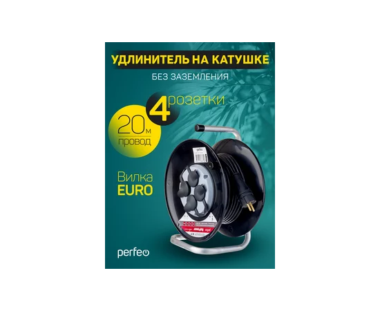 Удлинитель на катушке без заземления Perfeo "RU POWER" 20м 4гн 16А ПВС 2х2,5 IP44 (РБК16), (Арт. PF_C3370)
