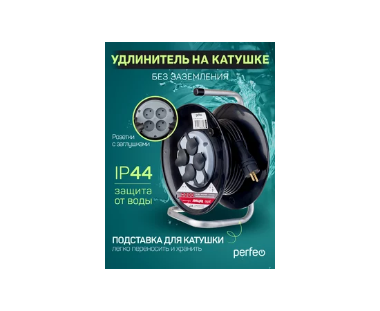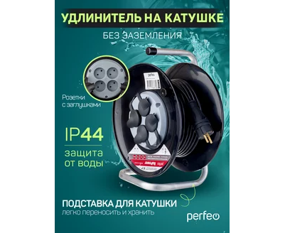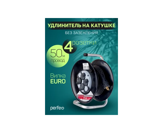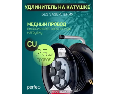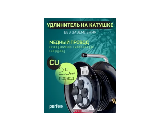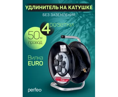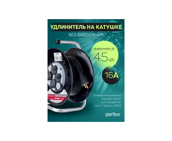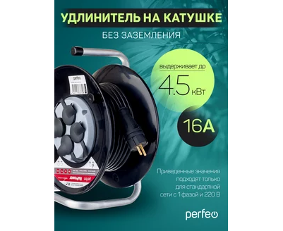 Удлинитель на катушке без заземления Perfeo "RU POWER" 50м 4гн 16А ПВС 2х2,5 IP44 (РБК16).