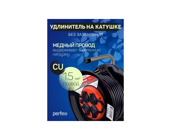 Удлинитель на катушке с заземлением Perfeo "RU POWER" 30м 4гн с т/з 16А ПВС 3х1,5 IP44 (РБК16).