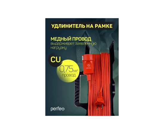 Удлинитель на рамке без заземления Perfeo "RU POWER" 40м 1гн 6А ПВС 2х0,75 (УХ6-101), оранжевый