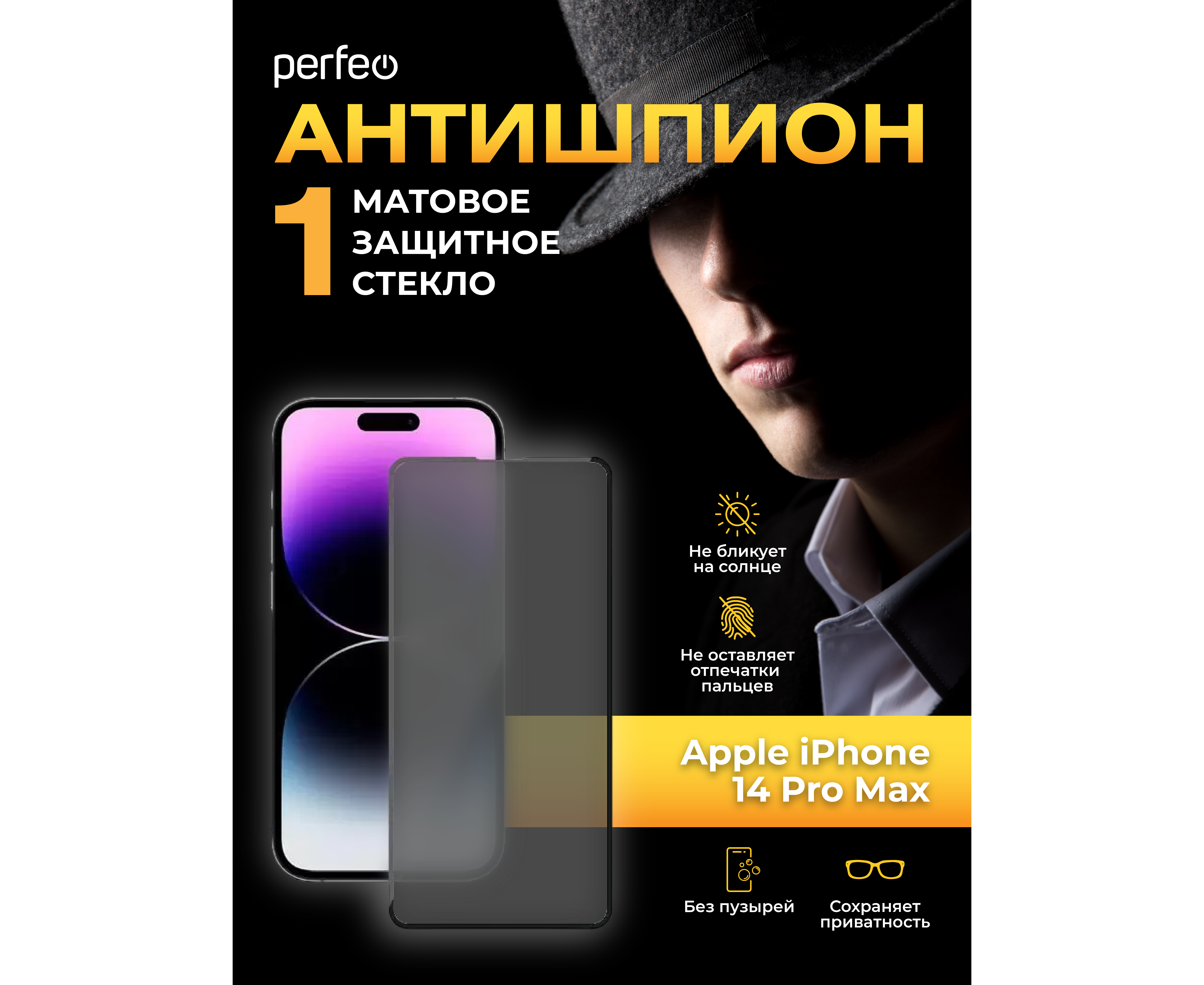 Perfeo защитное стекло Матовое Антишпион Apple iPhone 14 Pro Max