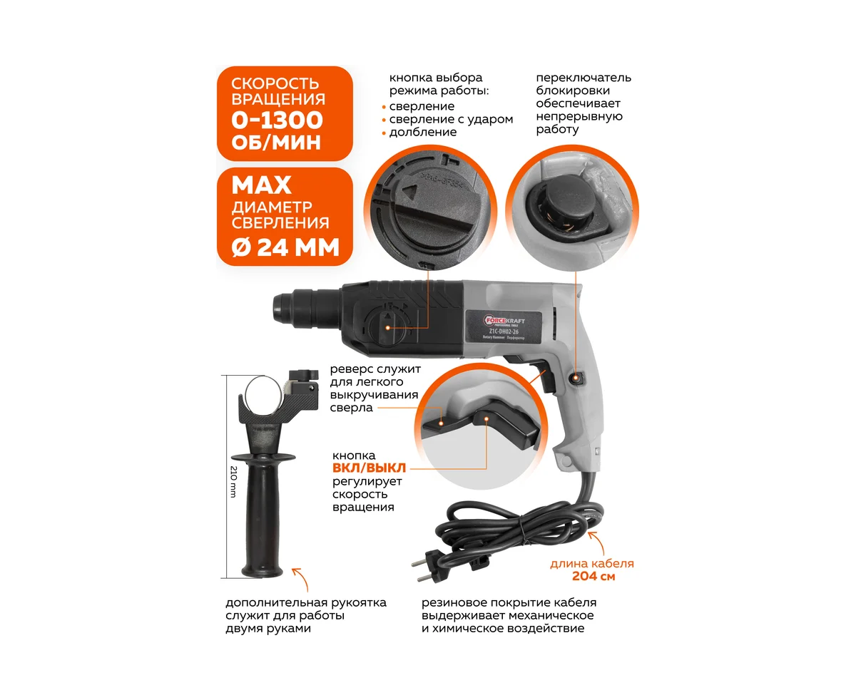 Перфоратор Forcekraft FK-Z1C-DH02-26(51852) электрический 800W