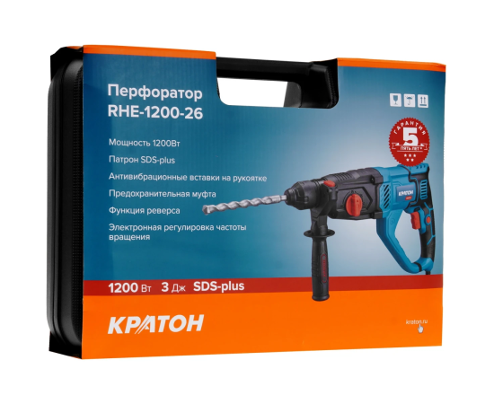 Перфоратор Кратон RHE-1200-26 патрон SDS-plus уд. 3Дж 1200Вт (кейс в комплекте)