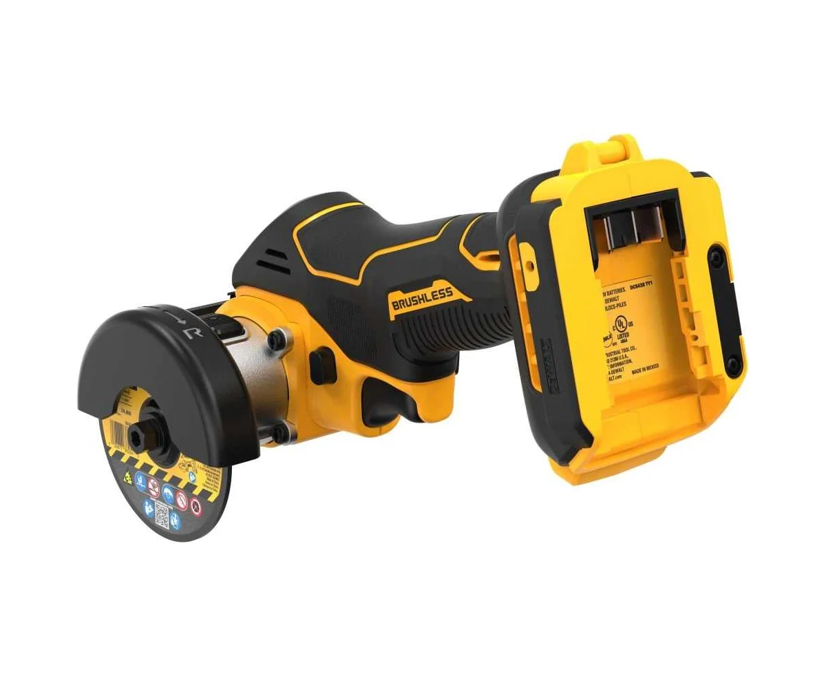 Отрезная бесщёточная аккумуляторная машина DeWALT работает с абразивными кругами и алмазными дисками 76 мм.