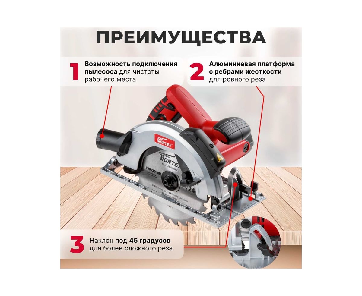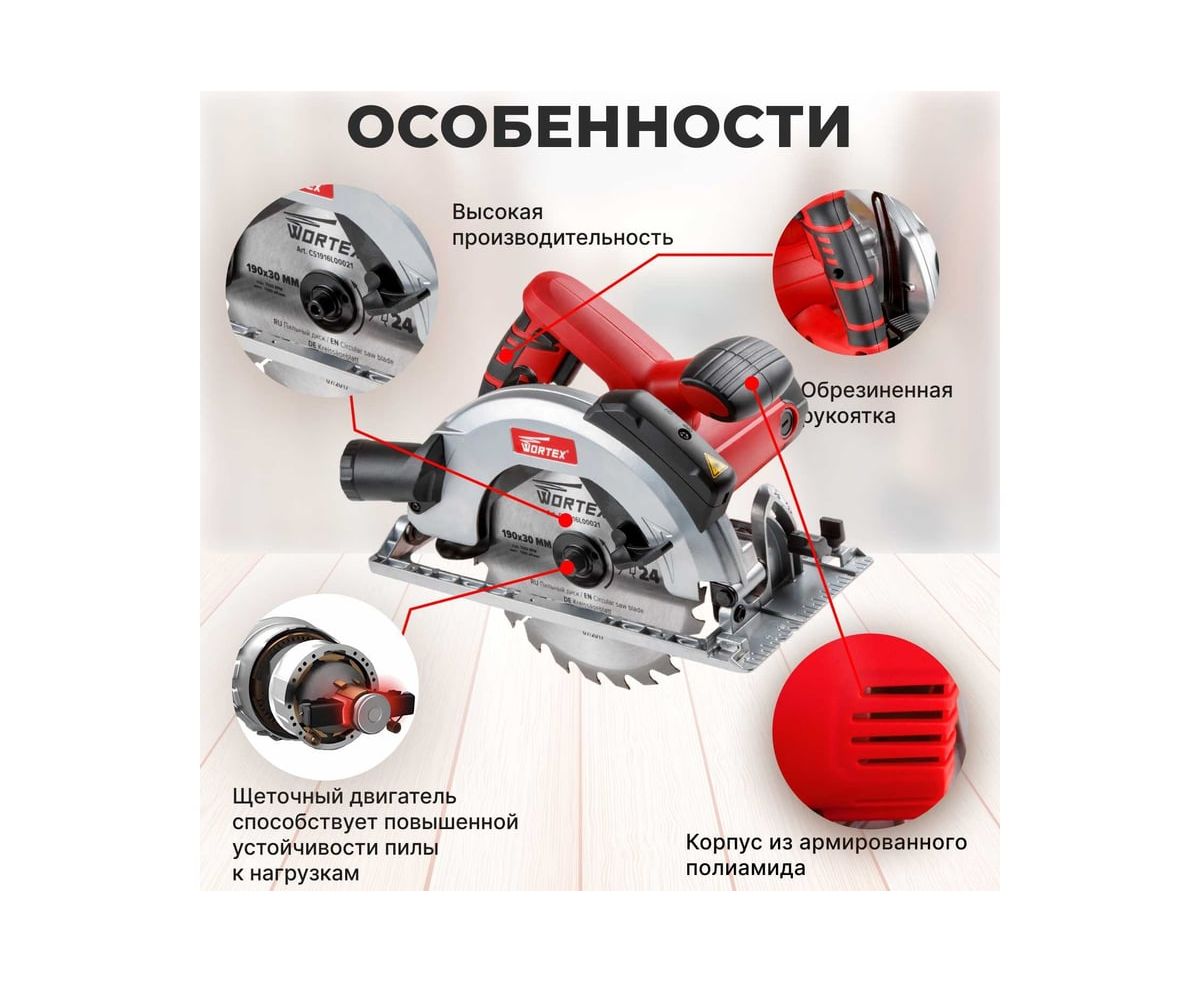 Циркулярная пила WORTEX CS 1916 L CS1916L00021 – это мощная, но при этом легкая и компактная пила подойдет для продольных и косых пропилов при максимальном уровне комфорта.