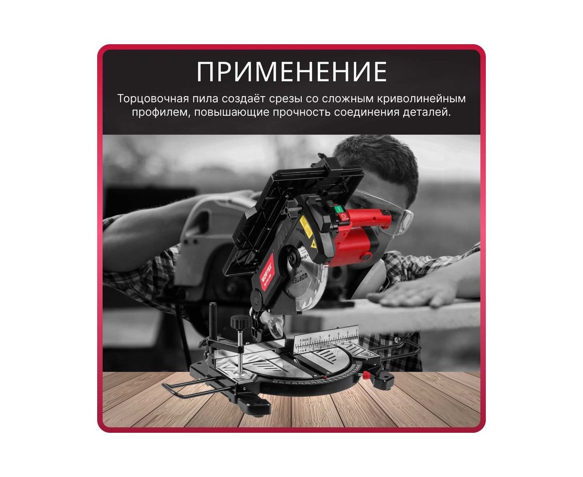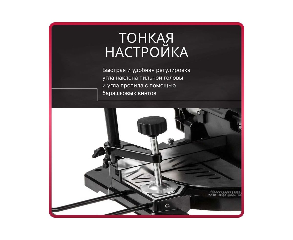 Надежное и прочное основание, ровный верхний стол 340х220 мм, яркий лазерный указатель и заводская юстировка позволяют добиться высокой точности реза.