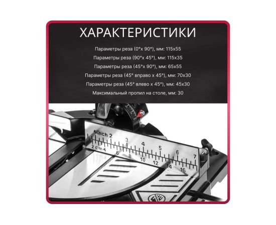 Пропил на столе до 30 мм. Максимальная глубина пропила 55 мм.