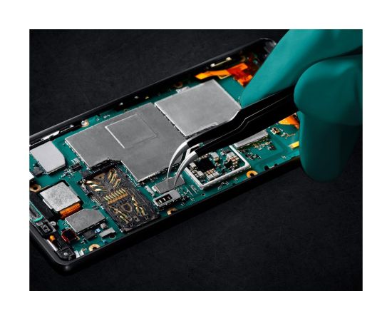 Прецизионный пинцет изготовлен из антимагнитной нержавеющей стали. Специальное покрытие ESD защищает от электростатического разряда