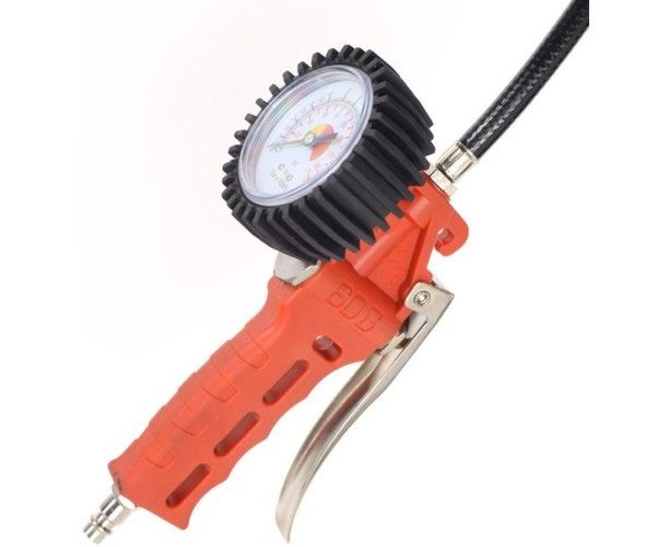 Описание Профессиональный пистолет для накачки шин с клапаном сброса давления; с манометром O80мм (0-12бар); шлангом 800мм и наконечником 25/W.