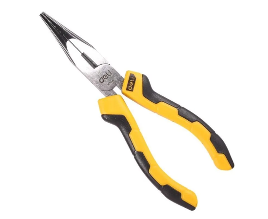 Удлиненные плоскогубцы Deli DL2106 160мм (углеродистая сталь 55, двухкомпонентная рукоять) используются для выполнения различных мелких работ, фиксации предметов различной формы, разрезания проволоки и др.