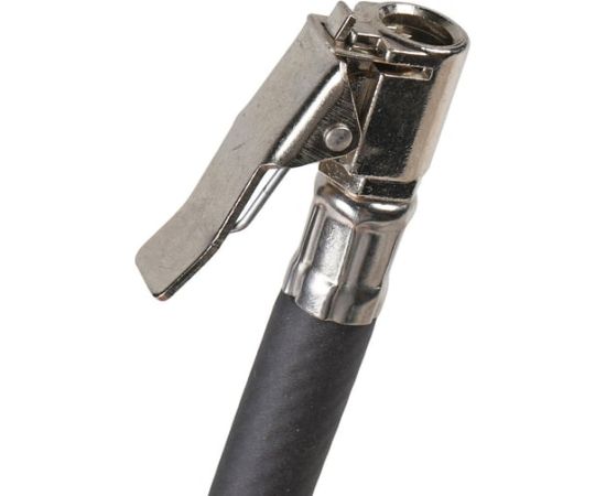 Пистолет для накачки шин с манометром Airline 12BAR ATBU003 изготовлен из алюминиевого сплава. Манометр защищён резиновым чехлом.