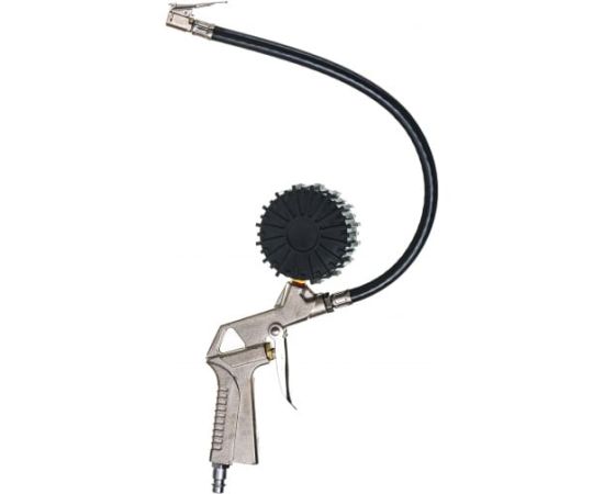 Пистолет для подкачки шин Pegas pneumatic tg-3 5001 оснащен прочным шлангом длиной 360 мм.