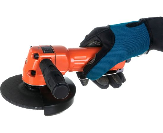 Кожух защищает пользователя от травм, искр, пыли. Регулировка оборотов в зависимости от силы нажатия на курок.