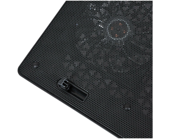 Подставка для ноутбука благодаря своим возможностям станет отличным выбором для мощных игровых систем с диагональю экрана до 15,6 дюймов. В основе модели используется 2 вентилятора диаметром 120 мм. Скорость их вращения может достигать 1500 об/мин, что обеспечивает интенсивный воздуха и эффективное охлаждение ноутбука. Выполнена из качественного пластика и усилена металлическими элементами, за счет чего отличается высокой прочностью и надежностью. Корпус модели выполнен в строгом дизайне, а вентиляторы снабжены подсветкой. Для питания используется USB-порт ноутбука. Также предусмотрено 2 дополнительных аналогичных разъема.