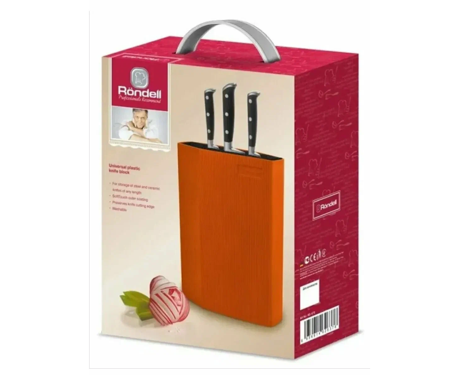 Подставка для ножей Rondell Orange RD-470 оранжевого цвета — универсальная подставка для 5–6 ножей или других кухонных аксессуаров.