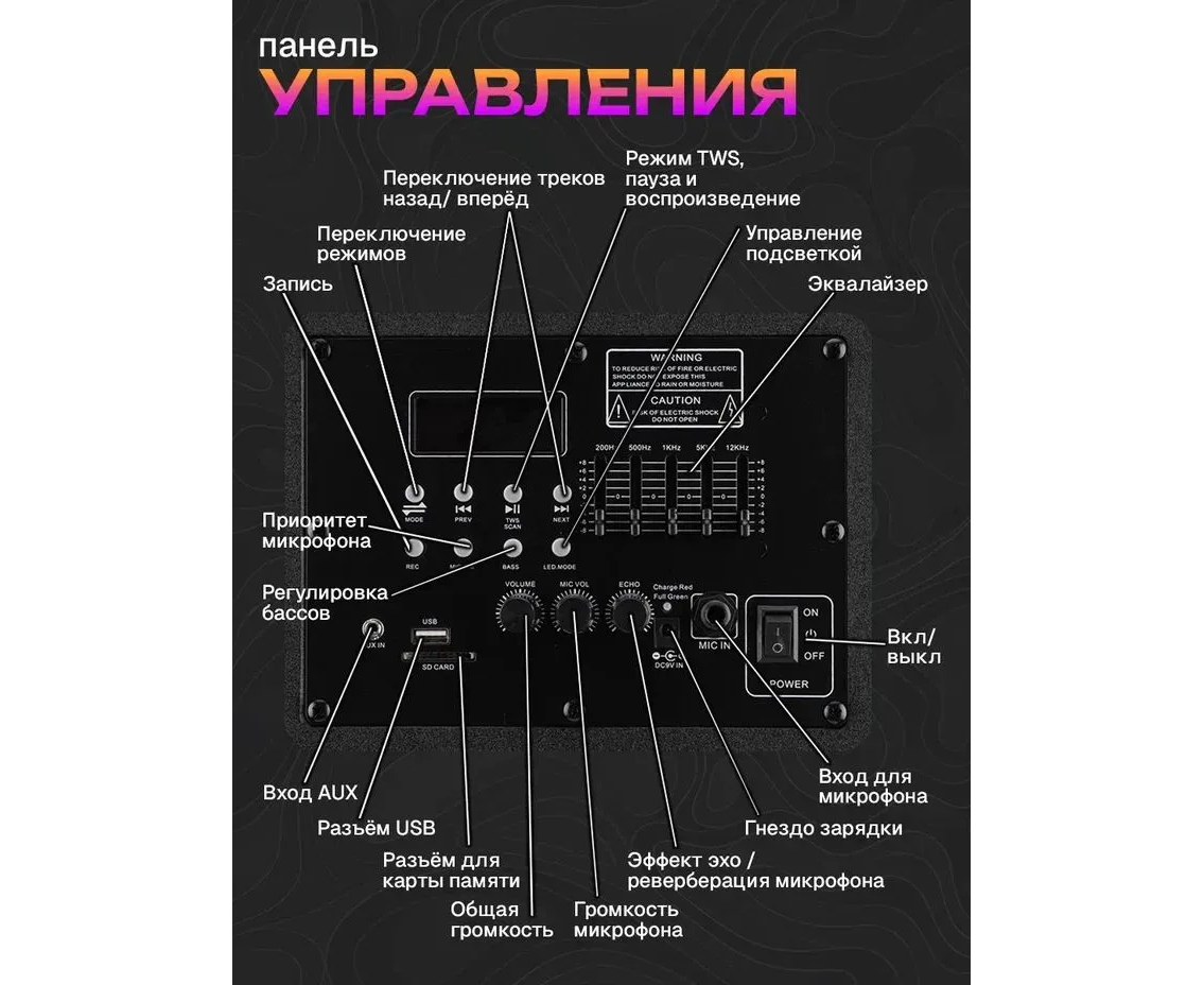 Микрофон, Подсветка, Пульт ДУ