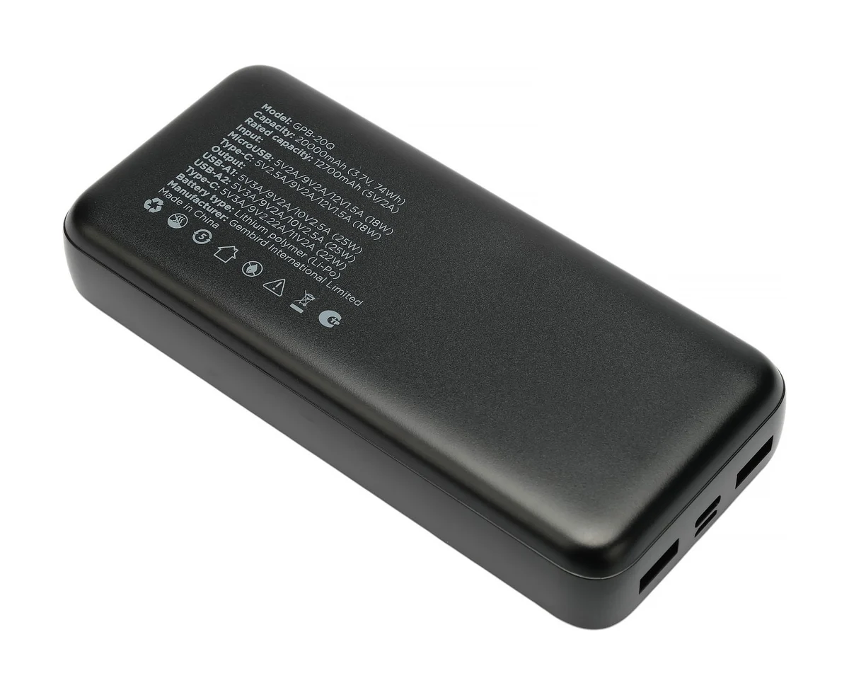 Портативный аккумулятор Gembird GPB-20Q 20000мАч, QC/PD, дисплей, черный