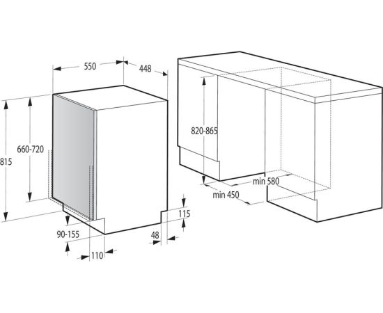 Глубина для встраивания 580 мм