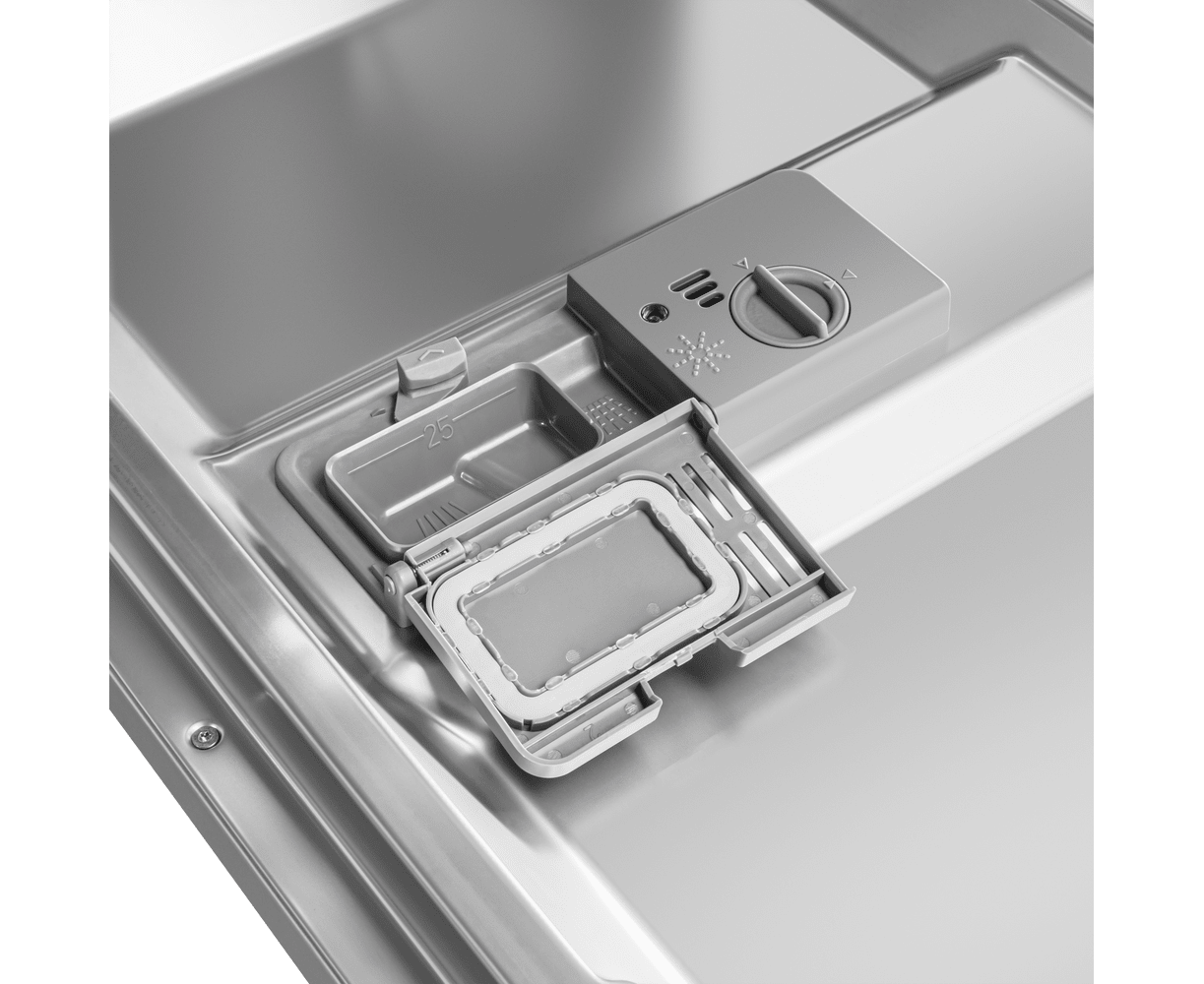 В посудомоечную машину помещается много посуды. Можно накопить её в течение дня или помыть сразу всё после семейного торжества или вечеринки с друзьями. Вместимость — до 12 комплектов посуды.