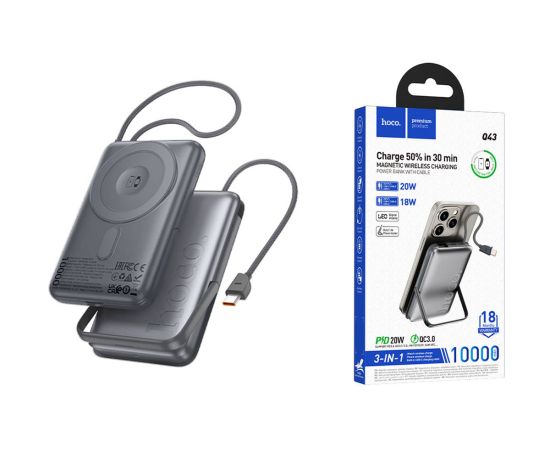 Power Bank Hoco Q43 Clever dual PD20W power bank with cable+watch charger+holder(10000mAh)metal gray