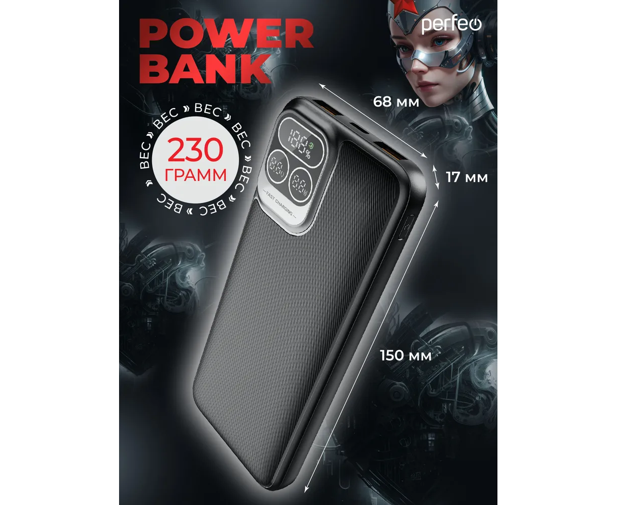 Поддержка PD 20W и QC 22.5W. Стильный футуристический дизайн.