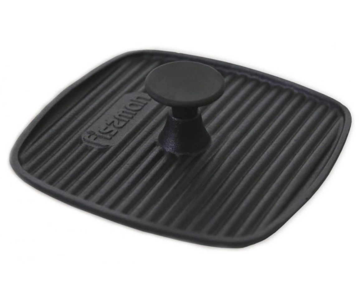 Посуда из чугуна - один из самых древних и проверенных видов посуды. При правильном уходе пользоваться чугунной посудой можно очень долго, ее можно передавать из поколения в поколение. Чугунный сплав абсолютно безопасен для здоровья человека и окружающей среды. Пресс для гриля Fissman предназначается в первую очередь для приготовления популярного блюда - цыпленок табака, обязательным условием которого тяжелый гнет. Чугунный пресс быстро нагревается и хорошо держит тепло. Это свойство используется для приготовления сочных аппетитных стейков из мяса или рыбы. Если пресс предварительно нагреть на сковороде , а затем прижать им кусок мяса, прожарка будет более равномерной одновременно с двух сторон. Радуйте себя и близких аксессуарами от компании Fissman.