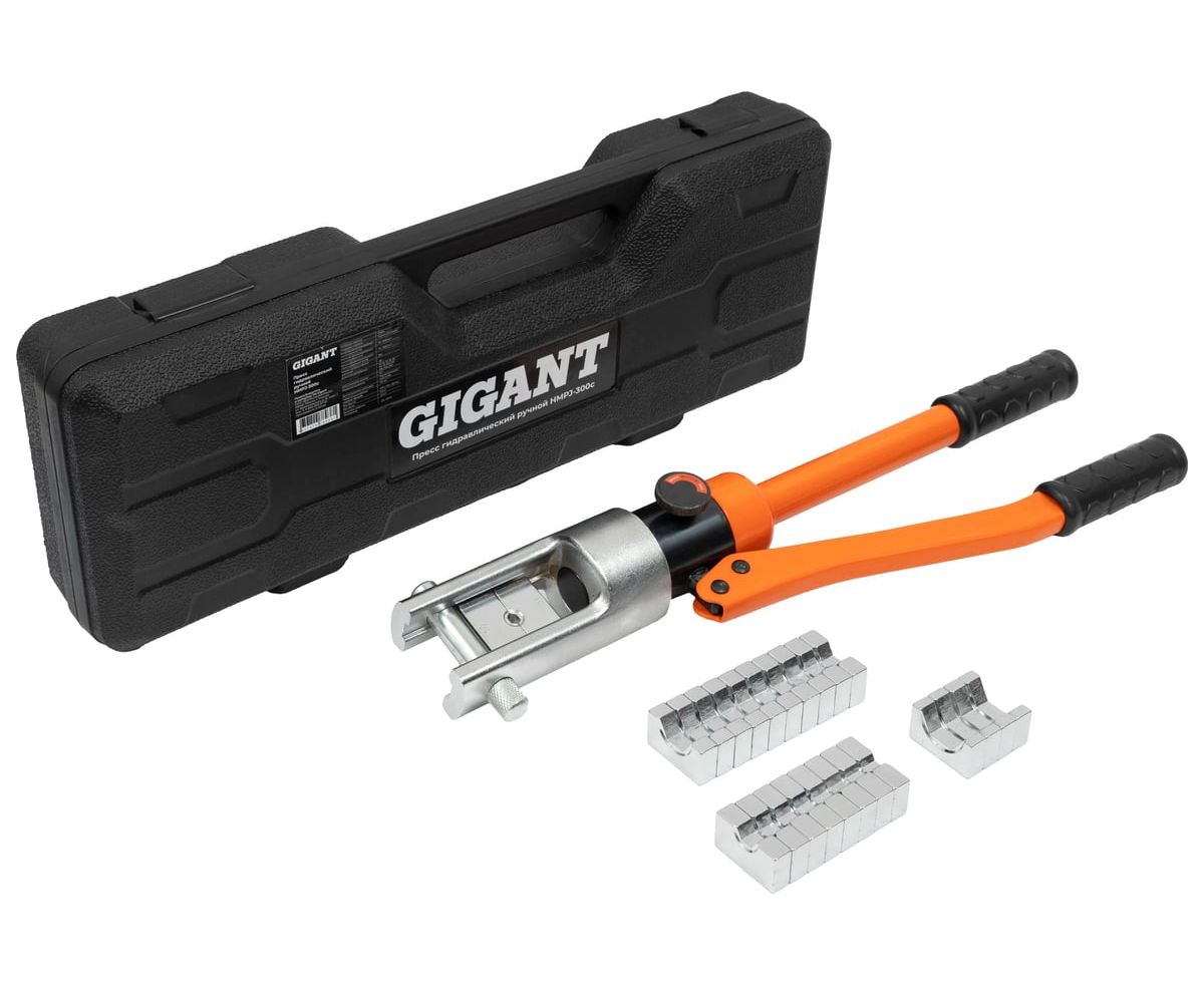 Гидравлический ручной пресс Gigant HMPJ-300с - представляет собой прочный и надежный в работе профессиональный инструмент, предназначенный для обжима наконечников из меди и алюминия, которые имеют сечения в диапазоне от 10 до 300 мм².
