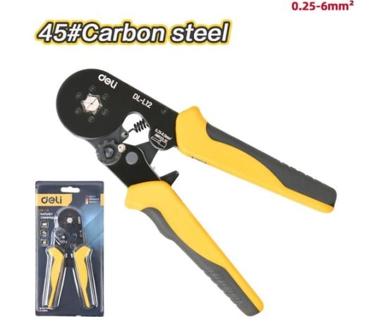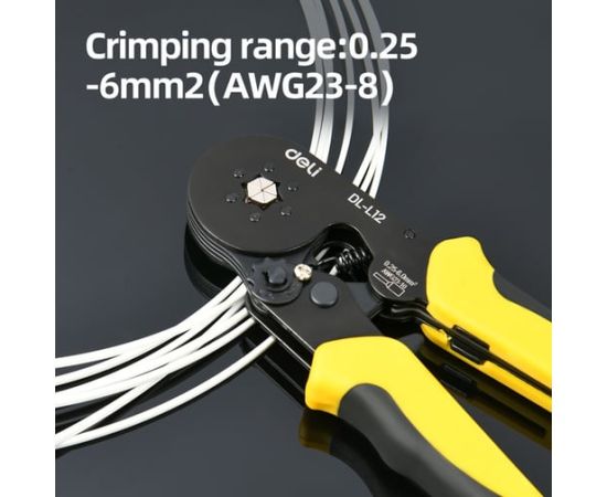 Пресс-клещи Deli DL-L12 предназначены для обжима наконечников НШВИ сечением от 0,25 до 6 кв.мм, что делает их универсальным решением для электромонтажных работ.
