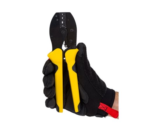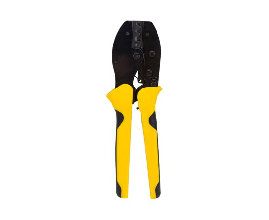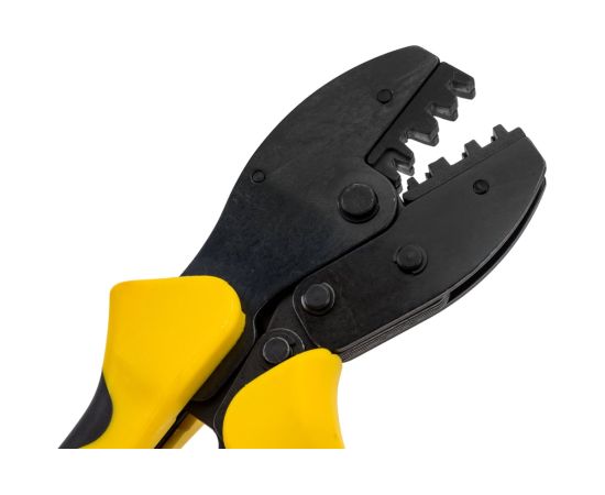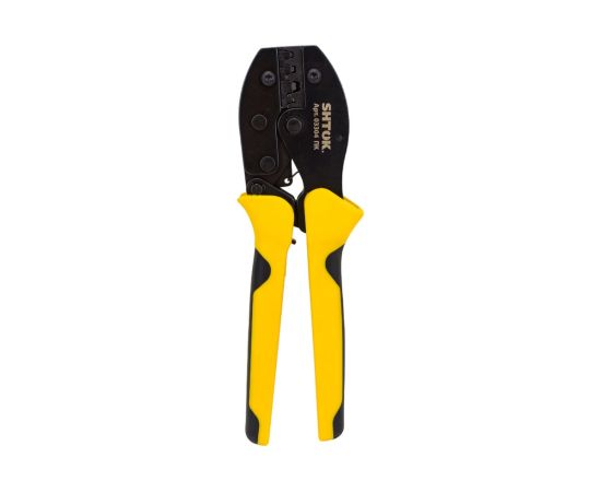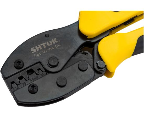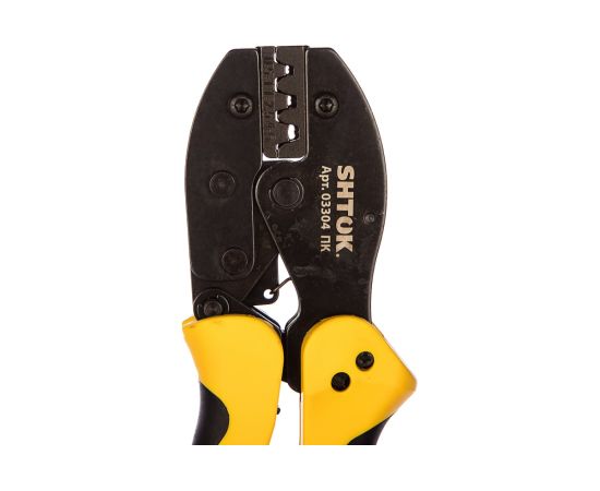 Пресс-клещи SHTOK 03304 относится к классу профессионального электромонтажного инструмента. Данная модель позволяет осуществлять обжим неизолированных коннекторов с площадью сечения от 0.5 до 6 квадратных мм. Ручки пресс-клещей покрыты двухкомпонентными чехлами: зоны из мягкого пластика обеспечивают более удобный захват. Рабочая часть изготовлена из качественной стали и устойчива к коррозии благодаря хромированию.